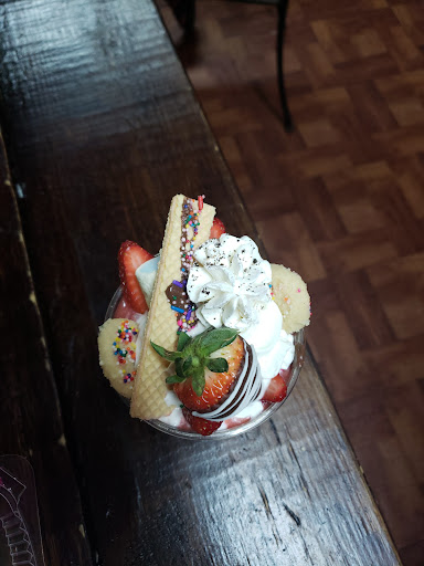 My brother brought me to this quaint little spot near his friends house. It's a shop that sells ice cream, frappes, chocolate dipped strawberries, strawberry cheesecake, mini pizzas, cakes, and has an area with custom baskets and arrangements for gifts or parties. I got a slice of cheesecake, my sister got a frappe, and my son got ice cream. They decorate everything with strawberries and cookies. The decoration is very cute. The cheesecake tasted like it was shipped in frozen. The ice cream was good as were the frappes. Theres a small area off to the side of where you order that has tables and board games to play while you wait or eat. I'm not a big fan of chocolate dipped strawberries to start, but these were ok. The way they decorate your drink or whatever you order is pretty cute. It was very basic and nothing that wowed. It was just something different for people to enjoy. The people were friendly and the space was very clean. Always important for...