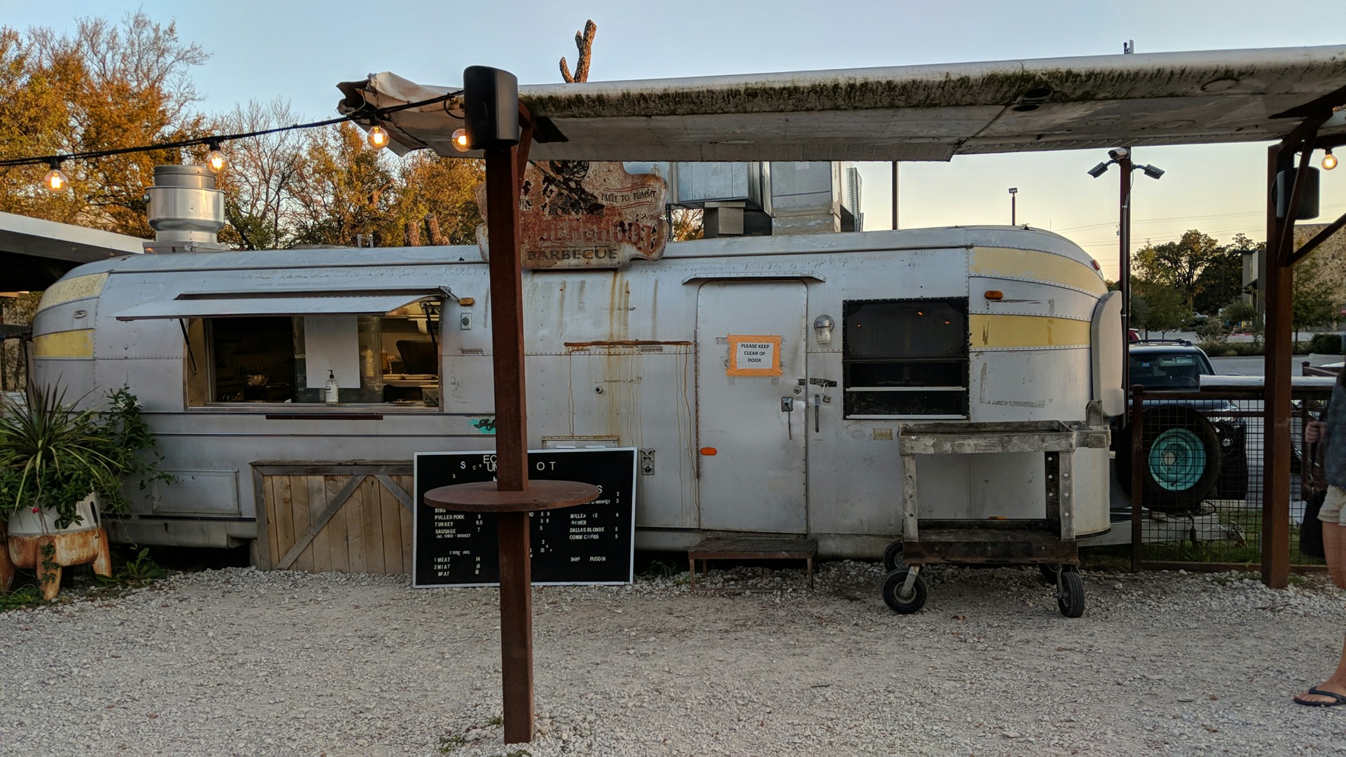 Read moreThe best part about this place the outside. Such a fun place to go. The food to me isn’t good. It all tasted unfinished. The apple claw need a better sauce to tie it together. The potato salad need a sauce or just more of what ever sauce they have. A little bit of mayo, mustard and salt will go a long way on the potato salad. The beans I didn’t like at all. To me bbq beans should be kinda sweet and not spicy and savory. They really tasted like they came right out of a can. The meat was okay. The brisket needed to be left in smoker longer cause it was tough and chewy and not falling apart. The turkey was just okay. It was good but nothing special. The loaded tater tots were very good. I loved that but then avian tater tots are very hard to mess up since all you doing is...