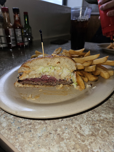 Read moreMy husband and I were on a road trip when I looked up good food and found this one. The ratings were already 4.6 stars, so we thought we'd stop in. Cute little dinner, they had a board with specials "March burger of the month". Even though they had lots to choose from on the menu, I decided to try this. It was seat yourself, and the waitress came right over. She took our drink order, attended to other patrons , came right back to us with our drinks, and then took our food order. I know this is a lot of normal detail, but most places are not this well organized. It usually takes a bit for the waitress to come back, and I was impressed right away! The food came out shortly after, too! I thought that it might just be because it was the "burger of the month," but I noticed another couple had sat down about 5 minutes after us, and their food was quick to arrive also. The plate was big, the burger was big with a lot of frys (hot and crisp!) The meat patty was a bit thin and I like mine on the thicker side with a normal burger, however, with the layers of corned beef, sourkraut and Cole slaw, it was a perfect blend of everything!! To top it off, the bill was half the amount we spent the morning before on breakfast for the two of us!! I will definitely return and tell all my...