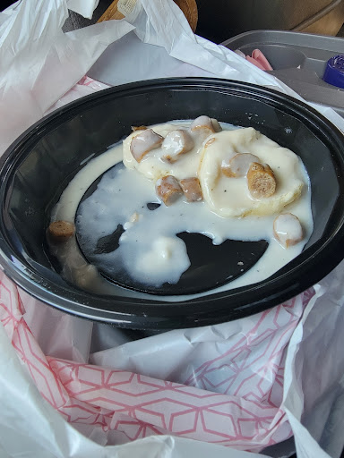 Read moreThe food? The biscuits are sad; they are super thin, more like semi-fluffy crackers, super small, and are priced high for what you get. The hashbrowns were actually really good. The service? I ordered Sunday mid-morning, so I totally get that it's busy, but this wasn't just busy. This was chaotic. I believe there were four waitstaff, one hostess/cashier, and one manager on the floor. The atmosphere? I sat at the counter and watched for a bit, not really being noticed. Then, after the manager noticed me she told me I needed to order at the crowded cashier, then said no, I'll get it. She began to take my order then I was asked to give her a moment so that she could seat others that came in. Last I checked, I, too, am a customer and was in the middle of ordering. She came back and wondered who was open on that specific POS, then looked at me and said, "Oh, right!" and she finished taking my order. As I sat waiting for my to-go order, I watched the cooks place orders in the pickup window. I then saw the waitstaff grab trays from the window directly above that pickup window. Those trays were nasty looking, with food stuff on them and were passing right over the food and the little section with exposed butter, etc,. I heard the manager asking where one order went. It apparently disappeared. She mentioned it needed to be remade. The manager then asked me to wait by the door so the counter could be cleaned off (I was the only one sitting there, but there were some dishes next to me). I moved over to the crowded seats by the door. The manager moved a couple of items off the counter and then went back to running back and forth. One waitperson told another their table was ready to order whenever she was. She said she was waiting for food for a table, and then would take the order. The one person offered to take the order for her, as they'd been there a bit, but she said no. She did go over like one minute later. A couple bigger groups came in, one was taken to the east section of the restaurant, and one sat in the big round booth on the west side. They sat there for a while before the gentlemen got up and went and got their own menus. I don't think the waiter noticed they were there, but how can you not see them sitting at an empty table? Definitely need to work on the biscuits and DEFINITELY need more floor staff during the rush times. I was exhausted just from...