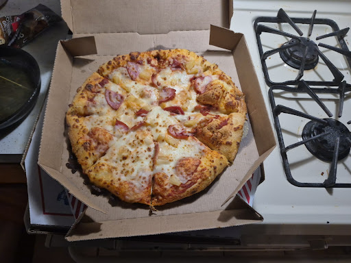 Read moreI haven't eaten there in quite a while. Decided to take a detour from the normal places that we go. Wanted to get the six dollar pizza. First off, if this is a medium, this is a joke. I wanted pepperoni and bacon. I got barely any pepperoni, and the bacon is pretty much non-existent. The guy who took my order also wasn't a rocket scientist. Ask for parmesan cheese, red peppers, you know, in the little packages. Oh, they don't do that anymore. They also have their menu, no longer on the side. It's up behind the counter and you have to look for it. Haven't been there in quite a period of time. Guess what? From now on, I'm going to continue going to Grandma Tony's. I get a much better tasting pizza a better deal.And of course way, bigger, sorry, Dominoes, you've lost...