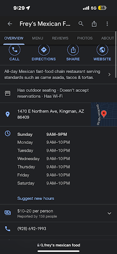Read moreBought food last night a carne asada fry with pico de gallo, and soft not crunchy fries. Well the food I got was stale and cold 10 minutes after I ordered. The fries were hard and the meat was tough. No pico to be found on the entire plate, and real thick cheese. I called immediately and informed them that the order was way wrong and was told to contact them in the morning for a replacement. Well I did contact them for the replacement, and was either the food or the recipe, so I provided them the recipe and was denied the reorder needless to say this is only the fifth time messing up my order but we will not be spending our money with you again,. Not with your attitude...