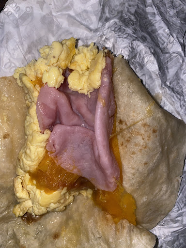 Sub out the other meats for the bacon right? Extra charge whatever. I get home and it’s ham and literally one and a half pieces of practical uncooked bacon and ham. I go back and young man can’t do refunds. So I ask to remake it explaining my complaint. It’s subbing not removing. Two strips for every meat removed, I paid for. I get the second burrito and it’s literally two pieces of bacon and half the amount of eggs.
