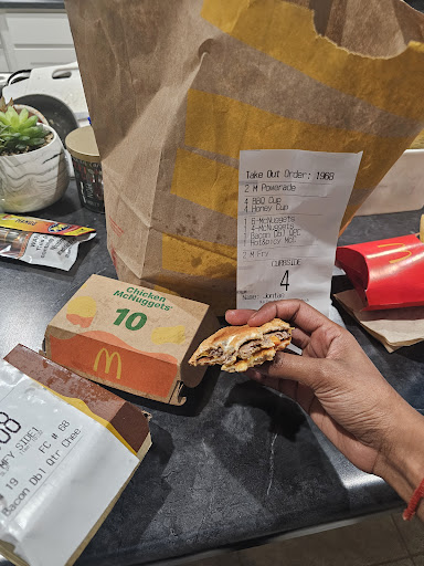 Read moreI was in there last night with my two daughters, we typically I try to avoid this McDonald’s because we know how it’s ran, but we were desperate, and hungry. I cannot even explain how unbelievably chaotic and unprofessional my experience was. not to mention how truly messy and disgusting the entire restaurant was in fact the three customers that came in after all mentioned this as well. It looks like it hadn’t been clean in days which I know is impossible but that’s how messy and gross it truly was. I know it’s McDonald’s I’m not looking for Anything amazing but I do expect cleanliness professionalism and employees who are being paid to do a job to do just that. Not to stand around doing nothing, yelling “F” you when being told to clock in, allowing their friends in street clothes to walk behind the counter and go grab a few medium french fries nor do I expect to be interrupted while placing my order by another coworker asking for “5 large cups so I can get my friends hooked up” Maybe there wasn’t a manager on duty Maybe there was and they could care less However I care greatly when I spend 30 bucks for food my entire order incorrect Not because they were short staffed and running around like crazy to give great customer service and ensure food was properly being bagged but because they had a full house of employees and not one of them were doing what they are being paid to do. The owner should really look into How to properly run a business if you want to be profitable I wouldn’t even give one star if I...