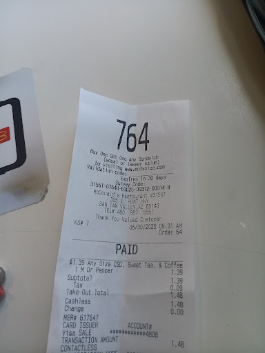 Read moreWe usually have great experiences at this location with the employees but today at 9:30 there was an older man working at the front cashier. I thought it was great that there was someone there because normally they donât have someone there anymore with the new technology. We always request for fresh baked cookies from McDonalds because they are AMAZING when right out of the oven. Employees are always happy to do it for us, thereâs only been 2 times where they said they would do it but then donât, or they would claim that they are fresh but they just reheat the cookies(you can tell the difference). This older gentleman gave my husband sass when he asked and was claiming that we were asking them to bake a whole new batch for 3 cookies. He went to the back and was still acting sassy when asking his coworkers to do so. They were super chill about it and said they would do it no problem. While we were waiting, I saw this gentleman eating a breakfast sandwich behind the cash register. Then sneezed in his hands. Then after that another employee brought out the cookies to put in the display, he then touched all the cookies with his bare hands that he just sneezed into to readjust the cookies and put some into a baggy then called us over to come get. We should have returned the cookies and asked for our money back after seeing him touch the cookies after sneezing into his hands but we did not want to deal with him any more and just threw away the cookies. None of the other employees were wearing gloves but I donât know if they are...