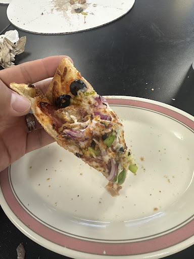 TACO PIZZA: I was skeptical about the enchilada sauce, but it complemented the other toppings. I chose to add jalapenos and chopped tomatoes. The only thing I felt was missing was a side of salsa.