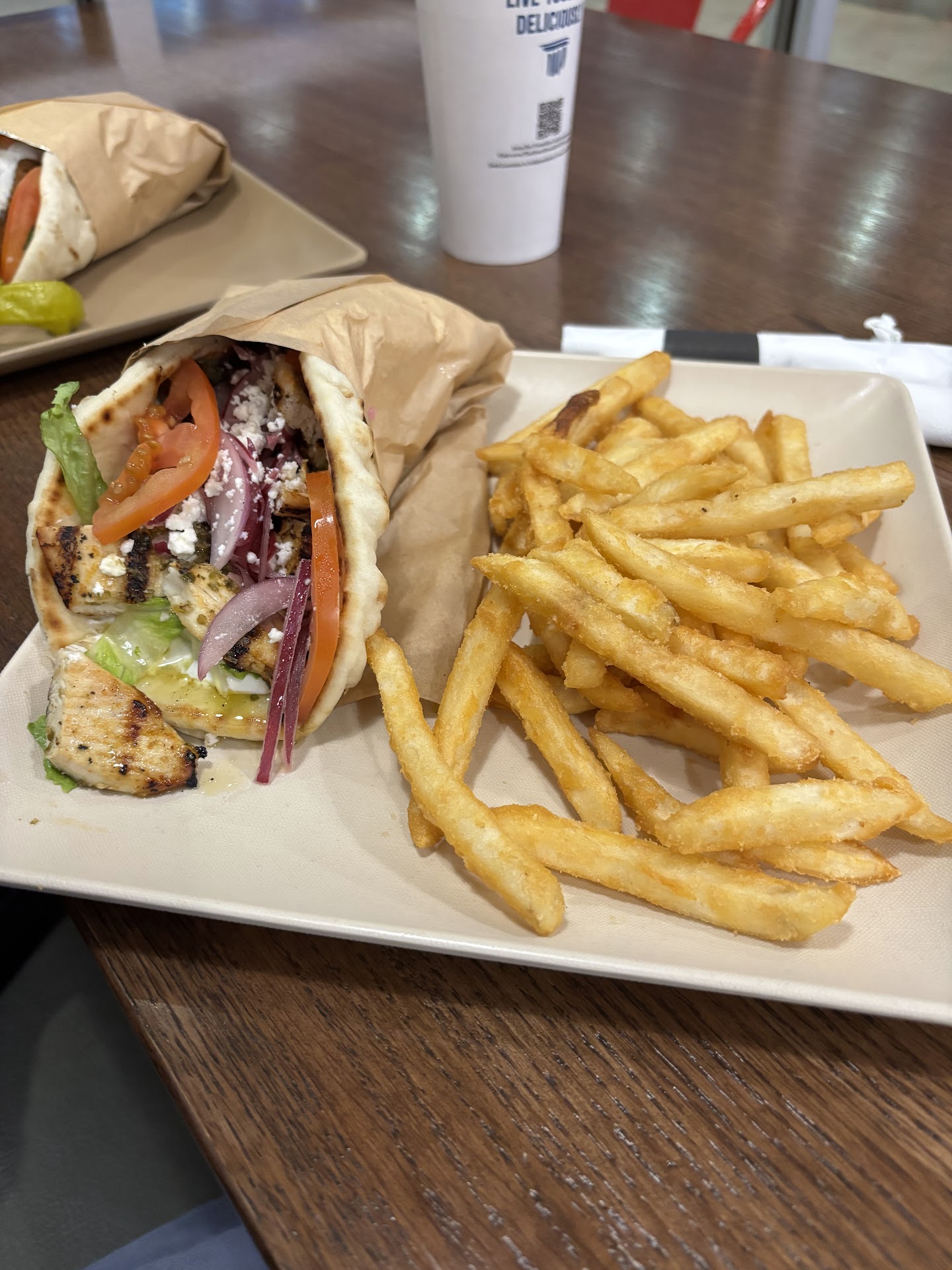 Read moreLoved the gyro—you can see the big spinning spit in back where they shave the meat. Pay the extra two bucks to upgrade to feta fries! Worth it! Plus I fed three kids (ages seven and under) with a single chicken tenders kids meal, and the chicken it came with was real, fresh, and unprocessed.
