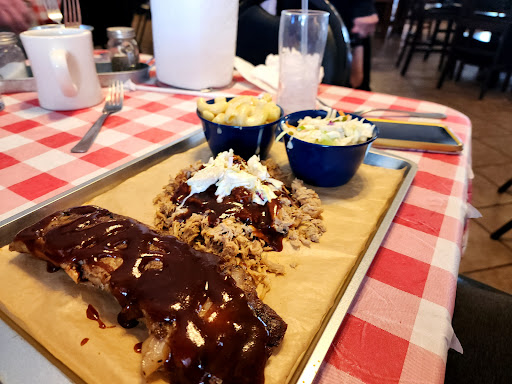 Read moreMy husband and I are currently staying at the Yuma Proving Ground military campsite, so we decided to give this place a try given its close proximity to the base. The first time we ate here, was for lunch. We shared a 3 meat platter with 2 sides (brisket, hot link and chicken and mac n cheese and apple slaw). So, let's begin with the positives. The location is very nice, right by the water, but we do wish that they had a couple of picnic tables available for outdoor seating. As for the indoor seating area, the restaurant is nice, clean and set up like your average BBQ joint. All of the staff from the owner to our server were very friendly, welcoming and attentive. Of the meats, we both liked our brisket the best. Perfectly seasoned, tender and pulled apart with little to no effort - as properly smoked brisket should be. The chicken was a bit on the dry side, but had very good flavor, so I'd be willing to try it again to be fair to the cook and the owners. The sausage was meh so-so. I hope that they consider adding quality beef hot links to their menu. I LOVED the homemade apple slaw, but they really need to scrap their mac n cheese recipe and try a new one - the words bland and blah quickly come to mind. They were out of homemade potato salad this visit, but we will definitely try it next time. I almost forgot! You have to try their stuffed jalepeno poppers aka texas twinkies! They are double wrapped in bacon, stuffed with cheese and any meat of your choice - then smoked! Absolutely delicious and dangerously addictive. So, the big question everyone is waiting for - will we eat here again? Absolutely! Next week as a matter of fact. Highly recommend that you give them a try! You won't be disappointed.