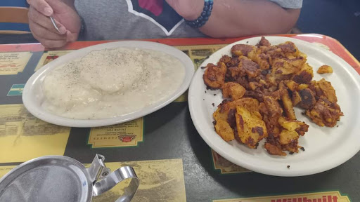Read moreThe wait was rather long, but it was a Sunday morning, so we expected it. They were all very nice. It was my hubbys bday and our first time at Zekes. I told them this when we checked in to put our names on the list. The only reason we gave the food 4 stars was bcuz the pancakes were kinda dry and my biscuits and gravy were lukewarm. The server was very kind and welcoming when we told her it was our first time there. She was also very kind about reheating the biscuits and gravy and told me to let her know if they needed heating up again. We had never seen the menu before so we weren't familiar with it and didn't know what we wanted yet, but we were very hungry and had waited about 25 minutes for a table when we were told it would only be 10 to 15 minutes. That being said, she asked if we were ready to order and when we told her we needed just a minute, it was quite awhile before she came back to get our order. Dont get me wrong, she was wonderful and like I said it was a Sunday morning, so I guess maybe we should of expected it, but people that were seated way after we were, were getting their food, and that was frustrating bcuz they arrived to put their name on the list a good 20 minutes after our names were put on it and a good 10 minutes after we were seated before them. All in all, the portion sizes were great and the food was very good and the atmosphere was nice too. We will come back again on a weekday to see if maybe the wait outside and the wait to order...