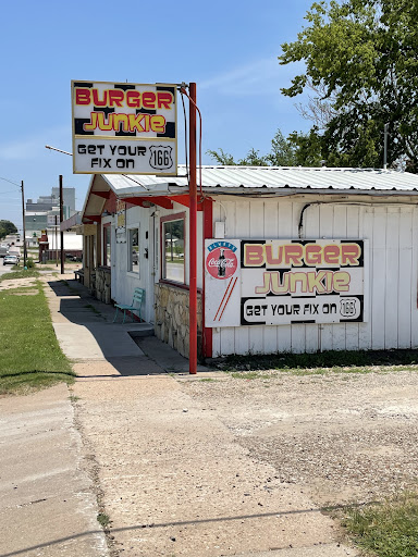Read moreThe Burger Junkie is The Joint you need to be when you are jonesing for a great smashburger and crazy-good french fries. More on the fries later. This burger joint is only an hour southeast of Wichita on US 166. The hard-working women working the counter and the flat grill could not be any friendlier. The smashburger's deliciousness could not be improved. But, THE fries...Oh My! The very healthy stack of hot AND specially seasoned fries were the best I've found in a long while! The cook offered to tell me about her secret finshing touch on her fries, but I said I could not be trusted to keep that secret! The walls and ceiling are plastered with Kansas licence tags, horror movie posters, and vintage Americana memorabillia with 4 or 5 four-person booths and a few other places to sit. This is now one of my monthly...