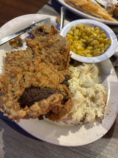We waited an hour for our food. When it was finally done, the waiter told us (party of 6) that he would bring our dishes out one at a time so he didn't drop anything. It took 10-15 minutes to get each plate. Both of the chicken fried steak orders came without gravy (one was charred and we had it removed from our ticket because we didn't want to wait another hour for another plate.) All of our dishes were missing their dinner rolls. While the manager was at our table, we informed him and he brought us some that were borderline burnt. One of our friends requested a refill on his sweet tea and never got it. We also had to get that while the manager was at our table. I informed the waiter that two of us has shellfish allergies a because someone in our party ordered shrimp, and he informed us that they're was nothing they could do about it because all the food is fried in the same oil. The only reason I'm giving 2 stars instead of one is because my food was delicious. The service...