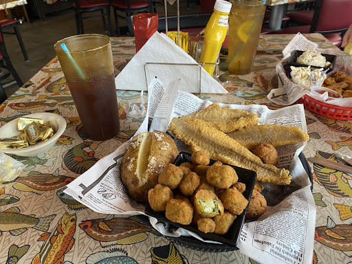 Read moreWe drove past this place on the way into Eureka Springs and saw that the parking lot was filled to capacity on Friday at dinner time. We stopped in on Sunday at about 11:30 a.m. for lunch. There was a handful of people there, but we almost left when nobody came to seat us. Luckily, we stayed. I ordered the 3 piece catfish meal which included 2 sides (I chose baked potato and okra) $20 on menu. My wife ordered 5 pieces jumbo shrimp with potato salad and coleslaw (on senior menu for $13). Both meals came with hush puppies. The food came quickly and was hot. We both thought the catfish was maybe as good, or better than, our favorite Kansas City restaurant. Large filets and breaded perfectly. The shrimp was good. The hush puppies were surprisingly good with corn inside. The potato salad was very good. The Cole slaw was so so. We saw that there was fried pie on the menu, so we gave it a try. There was a selection of 5 or 6 pies. We chose peach. It arrived with a golden brown crust and a side or vanilla ice cream. I enjoyed it because it was different, and because I have always liked ice cream as part of my dessert. All in all, the food was great with generous portions. When we left, the place was packed. The locals know a good thing when they see it (which is why we came in the...