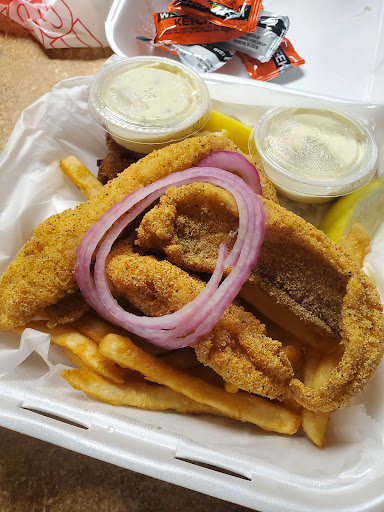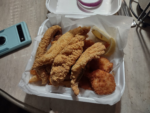 Read moreVariety of menu selections for any appetite. Friendly. I had the 2 piece catfish 3 shrimp combo with fries &slaw. (They give you an option of regular or jumbo shrimp) evey bite was delicious. Catfish breading was nicely portioned with the meat so not to over power the taste. Fries crispy like fries should be. Hush puppies had good flavor. Lemon wedge, shrimp sauce, tartar sauce and catsup. They have me extra catsup.