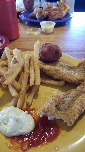 First of all, the fish was flat-out bland. I ordered the Big'un catfish dinner half regular and half cajun. The cajun pieces were a darker color than the regular pieces. I ended up eating one of each flavor, and unfortunately, they tasted identical.
