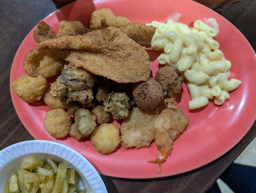 Read moreI spotted this little place on the map and decided to check it out for dinner. It's basically a buffet of fried foods with some sides thrown in. We're talking fried catfish filets and steaks, chicken tenders, frog legs, shrimp, fries, green beans, hush puppies and mushrooms & okra (I think). The sides consisted of mac-n-cheese, greens, cob corn, baked beans, etc. They also had some crawfish and cold peel-n-eat shrimps. Desserts on offer were 2 different cobblers, some soft serve and a couple other things. The standouts for me were the tenders and the fried shrimp. The tenders were huge and the breading was perfectly seasoned. The mac was just so-so. Everything else I tried was pretty good. The soft serve was the custard-type with a slight yellow color instead of white and I loved it. The place overall was clean and the servers do a great job. I probably won't visit too much mainly because it's really out of the way from my neighborhood and it's a bit pricey. But 1 suggestion I'll make is I really wished they had some country gravy to go with those tenders. They're great by themselves but that gravy would kick them up to elite status. Just a thought. Btw, they could also use some sort of lighting in the parking lot cuz it's pitch black out...
