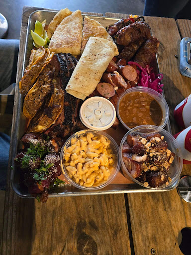 I was skeptical at first because these days a lot of the fast food restaurants are hit or miss BUT this one was DEF a hit! EVERYTHING tastes great! I got the 𝟮 𝗺𝗲𝗮𝘁 𝗽𝗹𝗮𝘁𝗲 𝘄/𝟮 𝘀𝗶𝗱𝗲𝘀(brisket and 2 ribs w/ loaded potato salad and charro beans) and an order of the 𝗔𝗿𝗺𝗮𝗱𝗶𝗹𝗹𝗼 𝗲𝗴𝗴(jalapeno stuffed with brisket meat, Oaxaca cheese, cream cheese, and wrappes in bacon) to go with it. Shyt was FIIIIIIIIIRE yall!!
