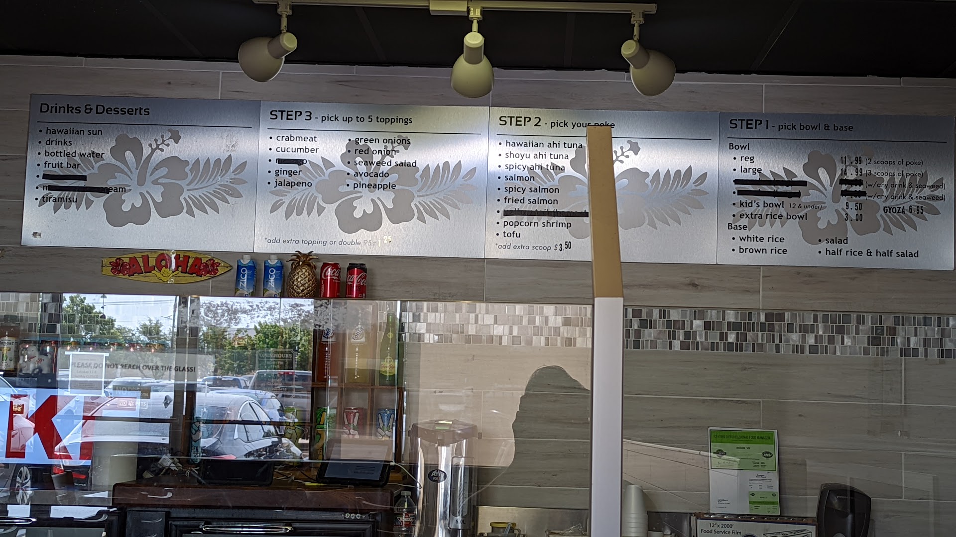 Read moreThe options for fish here are pretty good. I liked that they had several kinds of tuna, as well as popcorn shrimp and tofu. Those are two I haven't seen at any other poke place in DFW. When it came time to order my protein, I ordered my first, not seeing that there was three pieces of that particular fish left. The man scooped what was left and put it on my bowl. I thought maybe this was a normal portion, so I didn't say anything. I ordered my second protein only to see the difference in portions. Then as we waited for toppings, more of the fish I had ordered first came out. I had hoped they would put a little more, but perhaps they had added more of the second fish as compensation.