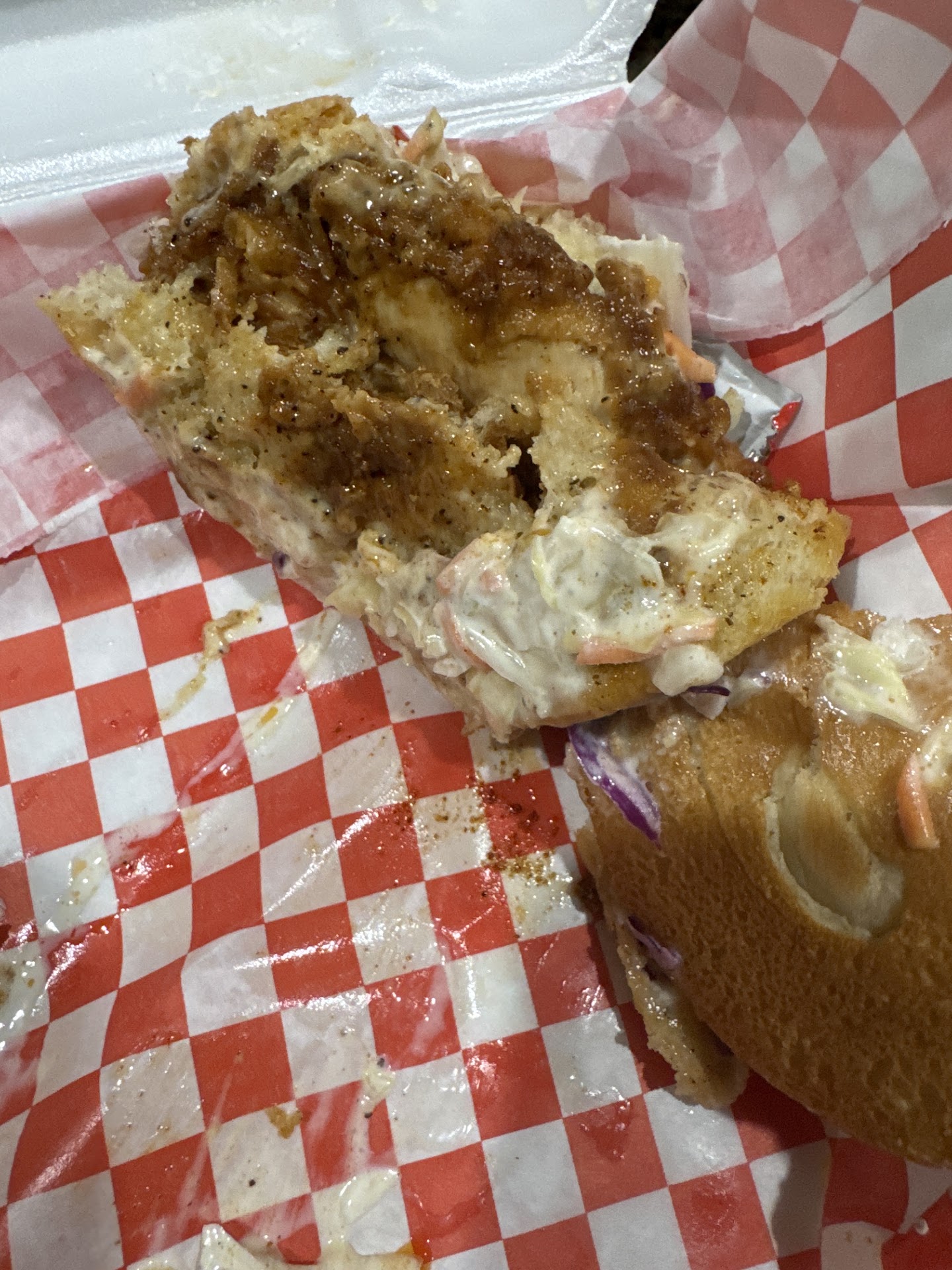 Ā Ā Ā Read moreI ordered a reg chicken sandwhich. It was terrible nothing but grease, I couldnāt even give it to my dog due to how greasy it was! Usually I donāt trust places where you canāt see the food being prepared & this is one of the main reasons why, it was like the guy just took the chicken strip out of the grease & threw it own a bun! It was supposed to have cole slaw on it which was very minimal but either way it was disguisting. The guy that waited on me was very nice and the jazz music was a great touch but itās not a place I will ever eat @ again. Itās all these restaurants in the area & only a small % are worth supporting on a regā¦smh you can literally see the grease. Before I eat here again Iāll buy some Roman...