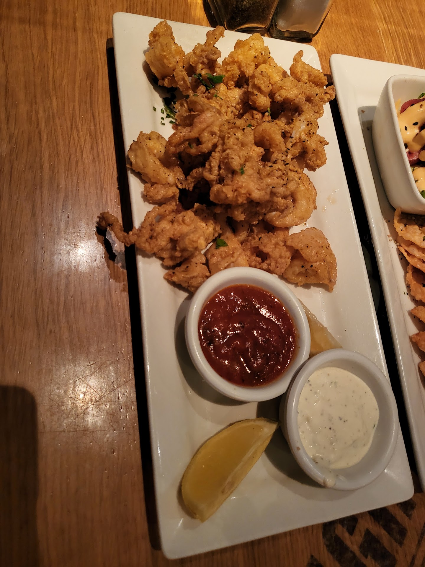Eventually, the manager came over, and to his credit, he was calm, respectful, and took care of the situation. He comped the cheese balls and offered us another appetizer, so we went with the Shrimp Garlic Parmesan, which was actually excellent. But at that point, the mood was already wrecked.
