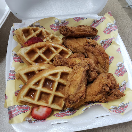 Read moreWhere do I begin. First my daughter saw reviews and pictures for this place on Facebook. She showed me the pictures of the food. I was like ok I see Breakfast Brothers are doing their thang. Boy was I wrong. Got off work on a Saturday morning. Me and the husband went into this restaurant at 7:45am. There was ONLY 3 customers at that time. Two ladies sitting and enjoying their breakfast, and a young man either waiting on his order or other people to join him. I ordered the red velet waffles and chicken strips, french toast, cheese eggs with bacon, 2 pancakes, scrabble eggs, with bacon, and 2 orders of mac and cheese with lobster. Plus 3 organe juices all to go. The lady told me it would be 25 minutes and that she would call me when our food would be ready. As we sat and waited in our vehicle. I asked my husband did you hear my phone ring because it had been 45 minutes since we place the order. So I decided to go back into the restaurant and was told that my food would be ready in another 10 minutes. So I am standing at the register waiting on our food. Than the place starts to get pack. With no where to stand I tell the waitress that I will stand outside and wait for my order. She said no problem we are boxing up your food now. So another 25 minutes pass and I go back inside and ask what is the hold up. Another waitress states that my food would be ready in 15 minutes. At this time I am like I do not want the food. But my husband (who is not patient) is telling me to wait. Finally 15 minutes later I get our food. PAID 102.00 on only GOD knows what. I told another waitress that I also had 3 orange juices with the order. She asked me where they for there or to go. Why the Scooby-Doo would I drink the orange juice there when I had my order bag and ready to go in my hand.Than She threw my receipt in the trash and I told her I wanted my receipt. She claim it was one in the bag. Got home no receipt. The food was HORRIBLE and that is me being nice. My boys did not barely touch there breakfast. I at a couple of bites of my french toast, eggs, and bacon. The only person that like their food was my husband he only got the macaroni and cheese with the lobster. Do not let the look of this food fool you. Never, never again...