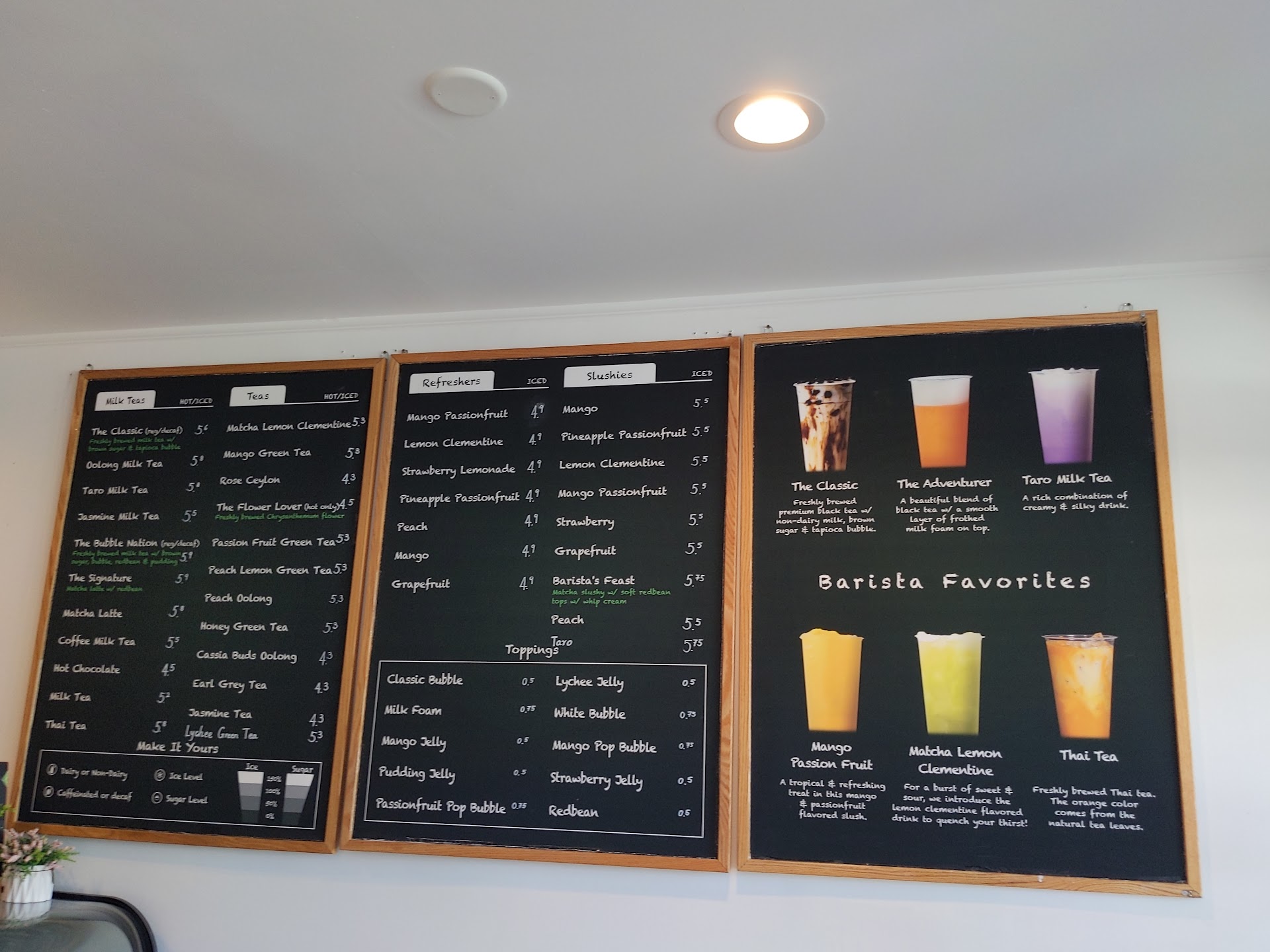 Read moreOkay so I love the bubble tea here it's 5 stars for that. However, be warned! ORDER ONLINE. If you don't, you will have to shout your order across the room, as well as your credit card number and details. Yes they have a square machine but it's not anywhere close to the door so you can't just tap your card/phone. This is not a quick process obviously. And they will prioritize online orders over you. The other thing is - they wouldn't let me add milk to a regular tea (I ordered a rose tea, asked for milk in it, and they said I couldn't have that. Why not?). Like I guess you can reduce customization for online orders to make it easier, but I ordered in person. The 3 stars is mainly for the...