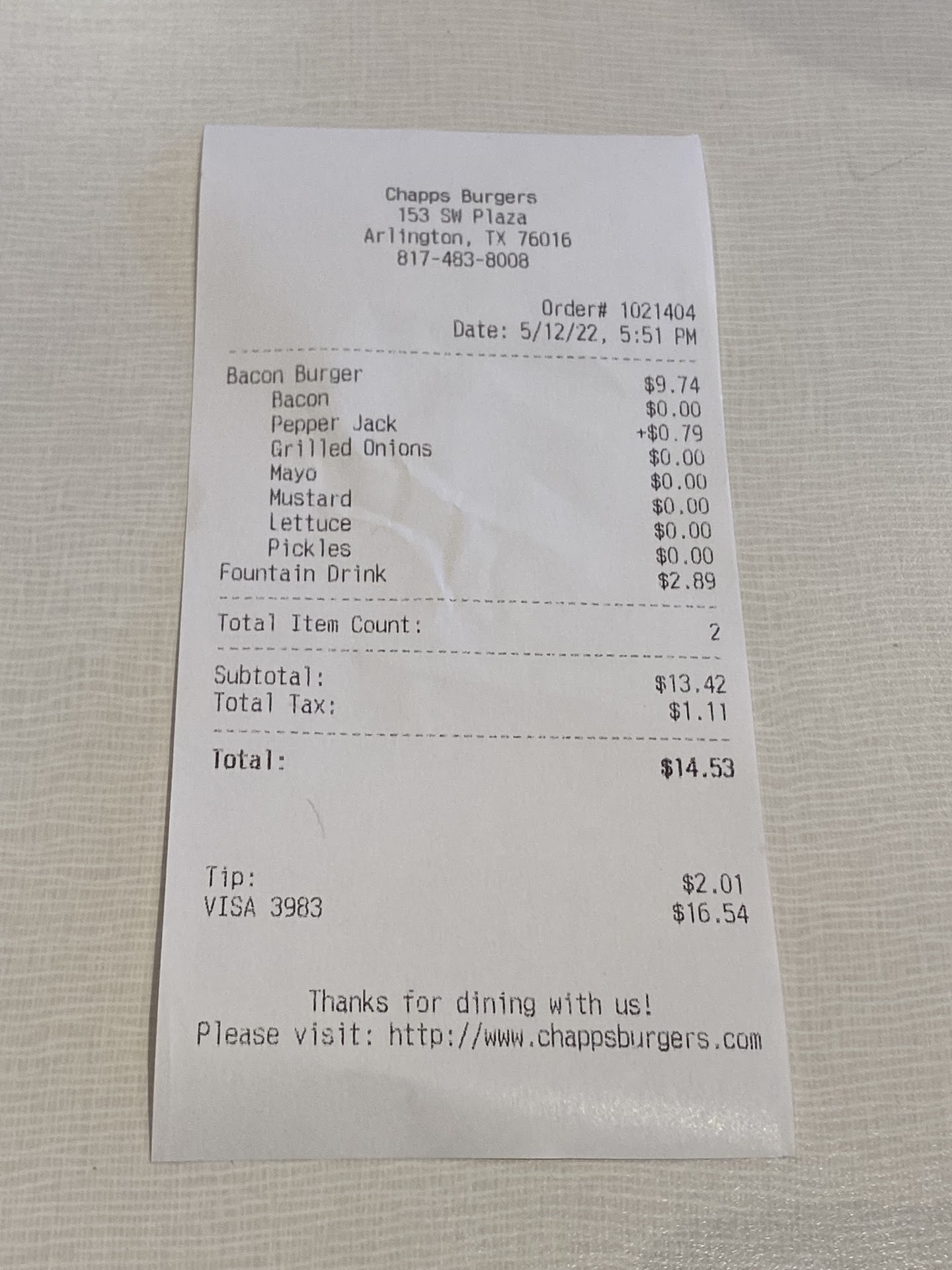 Ā Ā Ā Read moreI used to eat here many years ago but had moved away and hadn't in several years. My son was craving a burger and to be honest, I'd forgotten about chapps because i just don't frequent the area anymore. We'll we happened to be nearby and BAM, there is was, my old friend on Google maps. I instantly tell my son, "hey, i used to eat there as a kid, wanna try it?" He replies, "if you ate there as a kid, it's probably old and run down" so that was it, we were eating there for sure. To make a long story short.. Both my and my son's burgers were of the charts good, better than I'd remembered honestly. The fries were cooked fresh and crispy. I'm a burger snob as is my son and we both rate their burgers a 10/10 (son) and 9.5/10 for me. VERY few burger joints in Texas even come close to rating this high. Alamo Springs Cafe in Fredericksburg, Texas and LA Burger in the Dallas area come to mind, but that's it. "Grill'em all burger" in Alhambre California is a close third. In all honestly, I'd rate chapps right up there with them. Chapps is truly that good. If you're a burger snob like me, your gonna love this place. Highly...