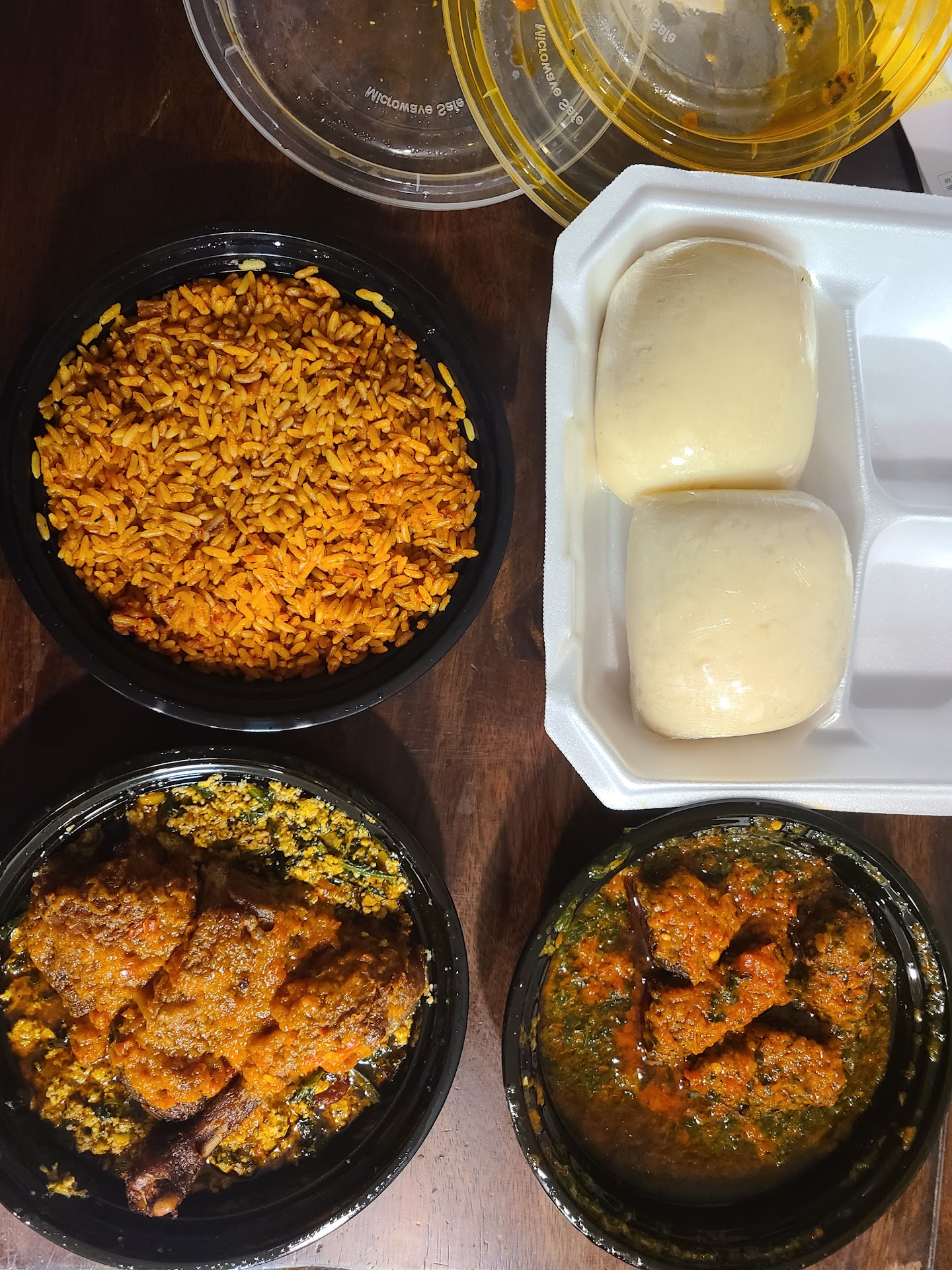 Now, let’s talk about the food—absolutely phenomenal! I tried the jollof rice with chicken and it was bursting with flavor. The spices were perfectly balanced, and the meat was tender with just the right amount of heat. The egusi soup with pounded yam was another standout—comforting, hearty, and deeply satisfying. Everything was delicious.