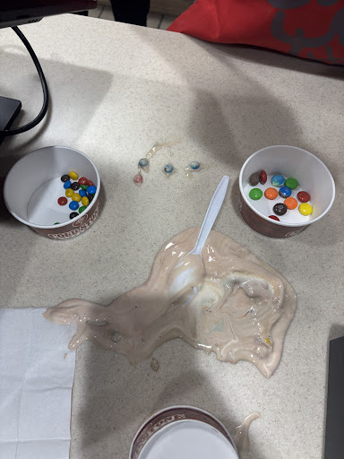 But I was too deep into this adventure to back out now. So I ordered a scoop of the “Choco-nado” in a waffle cone, because, hey, if I’m going to brave a chocolate storm, I might as well go all in. The guy at the mix-in station, who was eerily silent, threw in gummy bears, brownies, and Oreos with such aggression, you’d think he was trying to summon something. I swear I heard a distant rumble as he smashed those ingredients together.