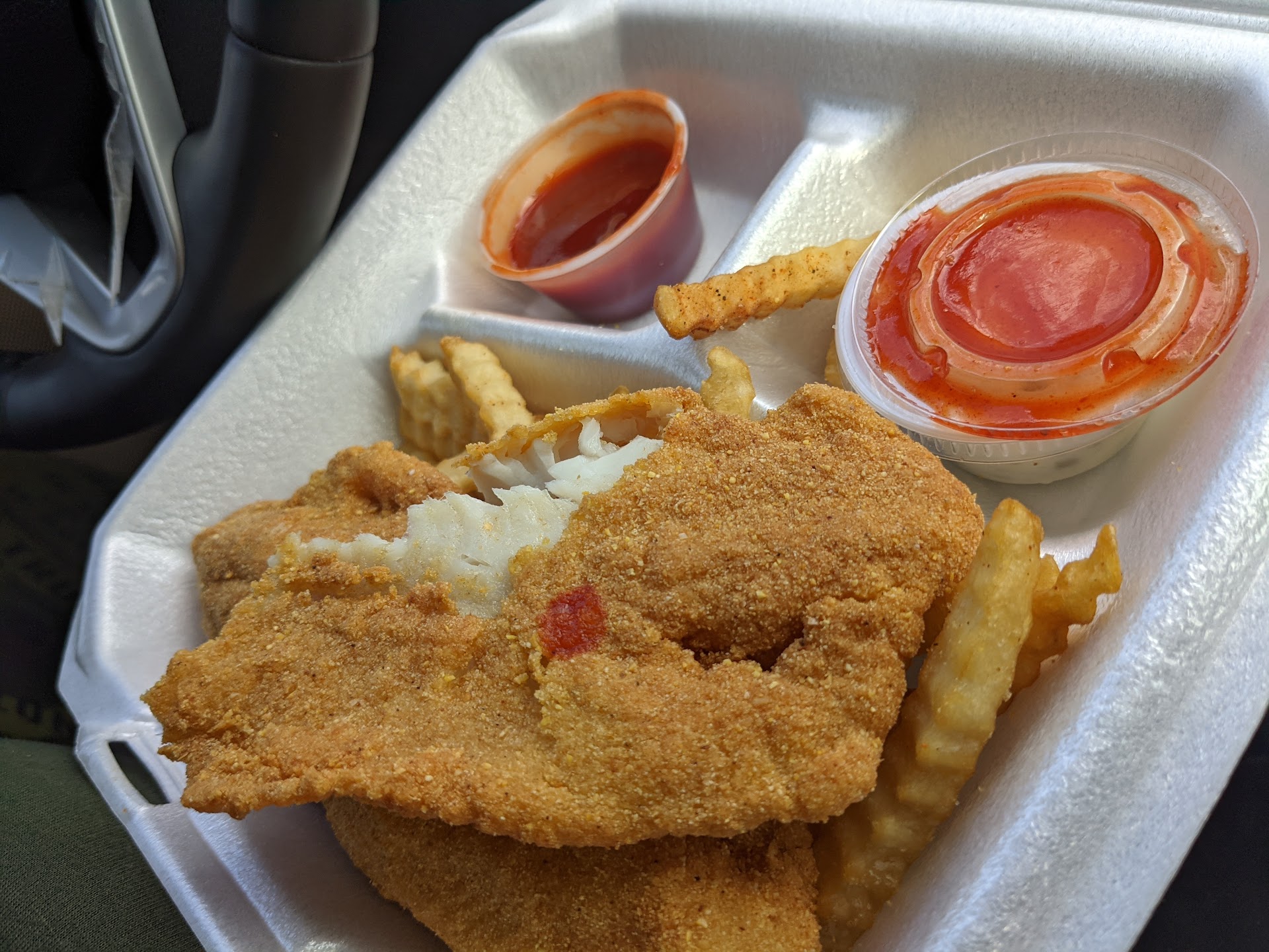 Ā Ā Ā Read moreOrder the lunch special 1 fish 1 tender and fries. Fries were very saggy. Fish was way to soft as in not cooked all the way!! Chicken tender was only thing crispy but even at that way to crispy and cold. Itās like they put the food in low temperature oil and it just stayed in there and not fully cook through! Worst decision in my life and wish I could have got a refund! Check your food before you leave so you wonāt be stuck with nasty food! The lemonade was very hot as well. Taste like powder crystal light! 377 has a Crispys I promise you thatās beyond delicious ! Not to mention way cheaper so you get your money worth and some! Overall would of been better off with Popeyes or...