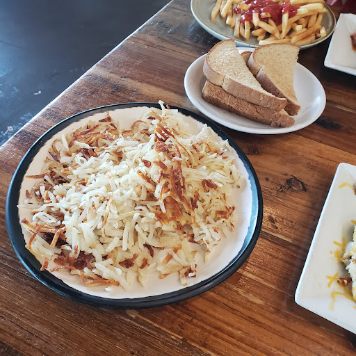 The food was below average, sad to say because they seem to have a great looking menu but the execution isn't there. My friend had the buffalo chicken sandwich, looked a bit small but okay, the real issue was the fries. They seemed old... cold & overcooked. We flagged down a staff member & they replaced it for her, it seemed the same. Our waitress had come back, we mentioned the fries again & she too offered to replace it. I had the biscuits & gravy omelette with toast along with a side of hashbrowns added. The hashbrowns weren't worth the extra $4, both the hasbrowns & omelette were room temperature, not warm like I had hoped. The omelette wasn't bad, but it wasn't anything special. Toast was toast. I had finished my four triangles of toast, half of my hashbrowns, & a fourth of my omelette by the time my friend's third attempt at fries arrived (much better!), she had also finished her sandwich by then. Trust me, we had time to talk about a lot of things... it's not like we ate our food in haste. The waitress had also mentioned that we weren't the only ones who had an issue with the fries as others had also had similar concerns.