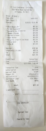 I had a terrible experience at El Toro and honestly regret spending a single dollar there. We paid over $200 for two people and left completely disappointed — and worse, sick.