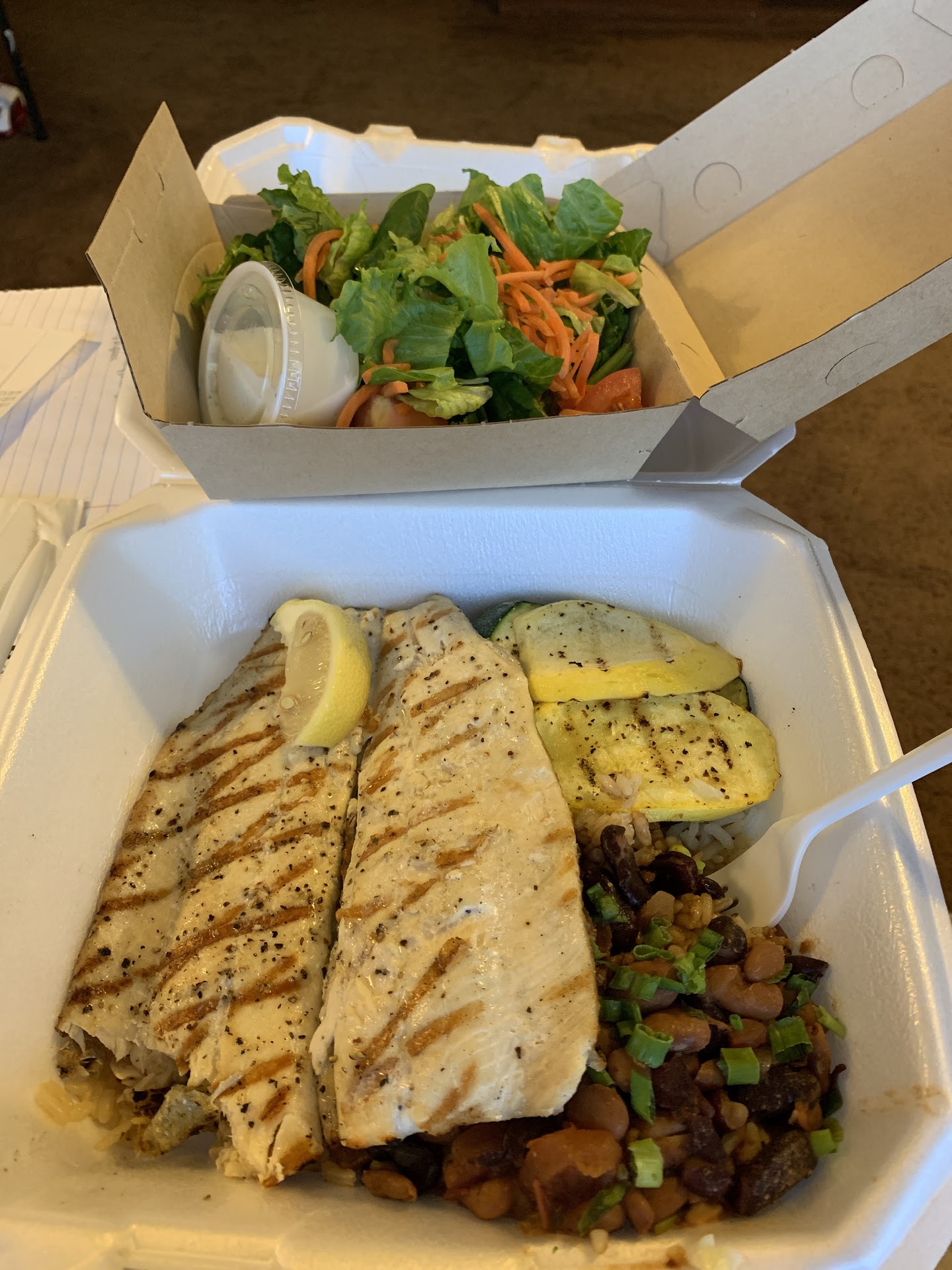 Wow I’m impressed at the freshness of the food. This food reminds me of specialty outdoor grill food that I have had the pleasure of eating out distant festivals in the DFW area. All that’s missing is the picnic table and your fork and knife and you’re ready to go! I ordered the traditional flavored grilled rainbow trout with olive oil and salt and pepper seasoning. Near perfect for me. A few other reviewers have complained that their meat/fish was under seasoned, but mine was good. I prefer a simple, light seasoning with a squeeze of fresh lemon juice on top. A small CAVEAT, the fish was a little bit dry, but honestly for me it wasn’t bad enough to affect the taste. I never ever order anything blackened, because the tendency for the meat or fish to burn and dry out at that temperature is too great, and I don’t like spicy so I do not want to have it made “snappy” flavor. The “snappy” flavor is when the meat or fish is made blackened and with Cajun seasoning. Everybody has different tastes, so you just have to order according to your individual taste....Even the salad which they gave me consisted only of all fresh vegetables, & this is head and shoulders above other restaurants. Many other restaurants will try to give you old lettuce at the bottom, but not this restaurant. I went in on a Sunday afternoon, (wasn’t busy at that time) and the girl waited on me was very nice and gave me everything I needed without even my having to ask. I do plan on returning again based on this experience! I truly hope to continue to have a great experience each and every time I visit this restaurant in the future! I was hungry, and this food...