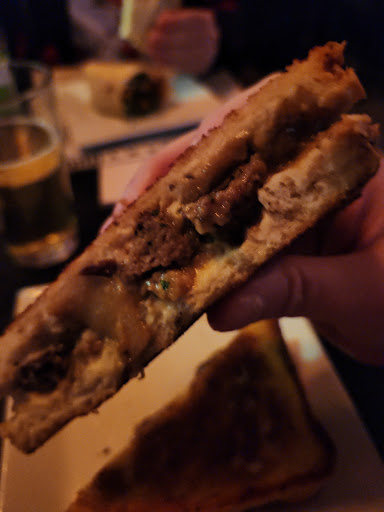 The atmosphere inside was dark yet intimately cozy. It felt a bit like your neighborhood bar/pub, as if you're suddenly transported to a small town in the Northeast. The staff were both friendly and informative on the selections. While they do take the 21+ restriction seriously, for those above that age, one can feel a bit like a kid again without the pressure of the outside world. After perusing the menu for a bit, I ended up with a Swedish Canadian sandwich and a side of Eggplant fries.