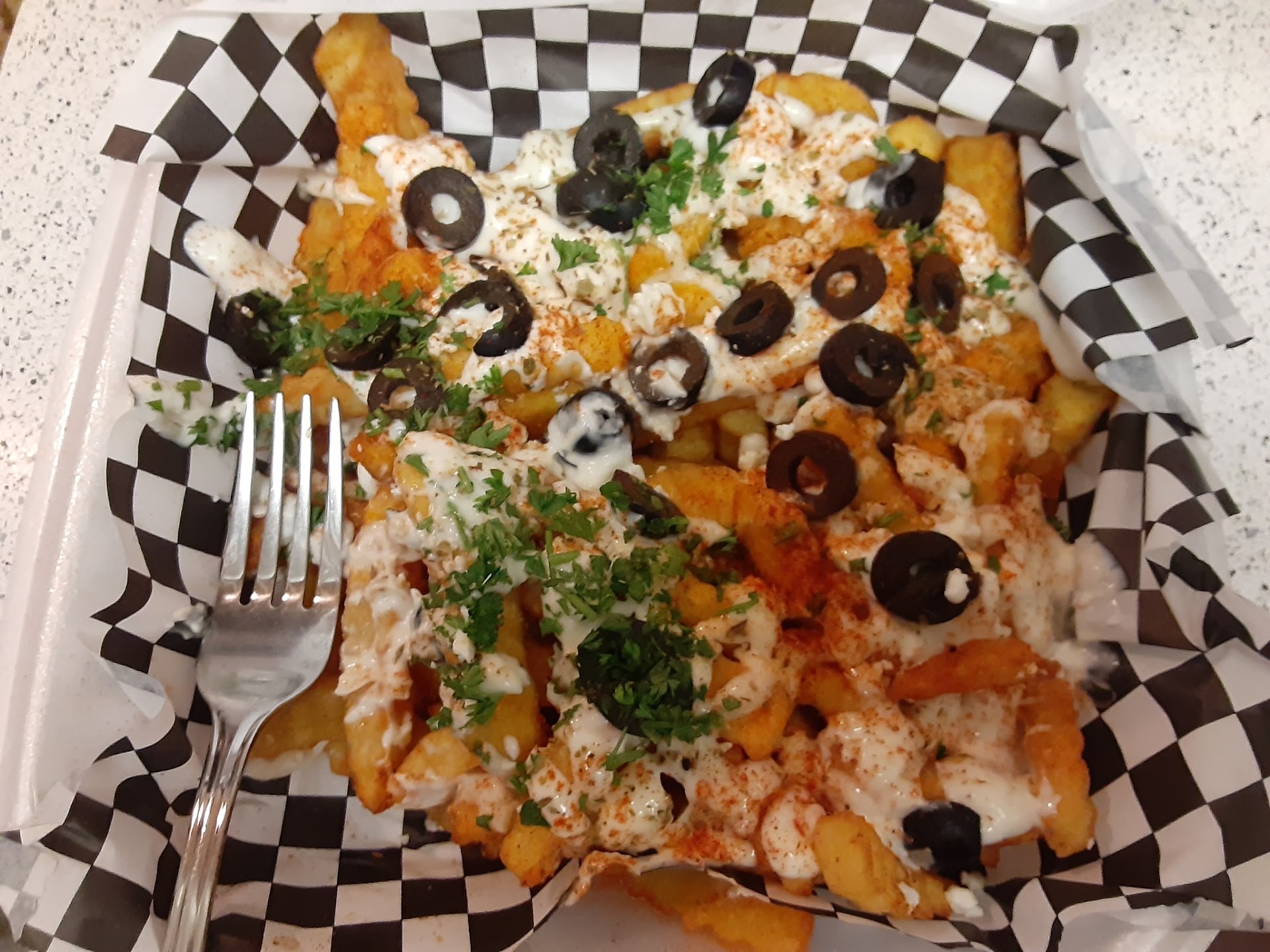 Read moreMy First Experience: On my first visit, I tried the chicken shawarma. In most places, chicken shawarma tends to be dry, but to my surprise, this one was incredibly juicy and flavorful. The garlic sauce was outstandingâperfectly balanced, not too strong and not too mild. I also had the deluxe fries, which were drizzled with garlic sauce, topped with feta cheese and olives⌠an absolute MUST TRY. I couldnât resist ordering both the hummus and baba ghanoush, and they were equally impressiveâsmooth, rich, and packed with flavor. My Second Visit: The second time I went, I tried the gyro sandwich, and it was a solid 10/10âabsolutely delicious. Of course, I had to get the deluxe fries again because they were just too good to pass up. Overall: From the food to the flavors, everything was top-notch. The overall experience? A...