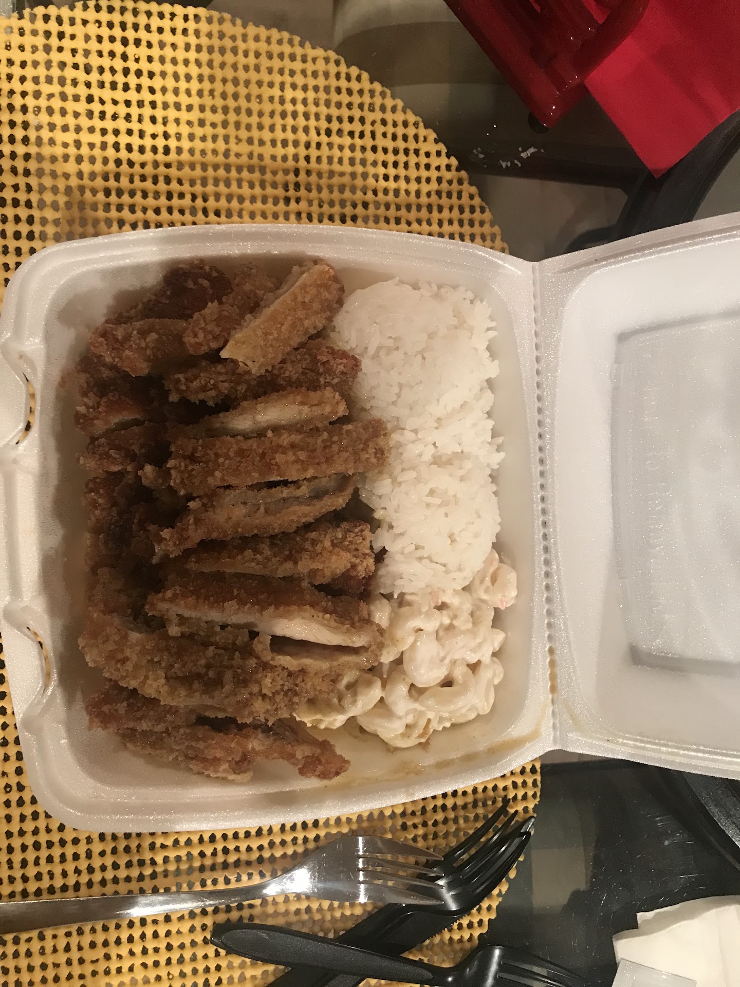 Read moreMy new favorite place for lunch and dinner: I usually get a grilled Spam musubi (or two) to go along with my grilled Spam saimin. The saimin is the closest to what I get when I go to Hawaii, complete with fish cake, dashi konbu (kelp), along with some dried fish flakes as a topping. The noodles are purported to be Hawaiian, and definitely taste like and have the texture of the Sun noodles that I've eaten in Hawaii. The broth is a little chickeny and a little shrimpy, definitely flavorful. The serving is rather large, and I get two meals from one bowl, though my husband usually finishes his bowl in one sitting. Another bonus: the saimin comes in a reusable, lidded plastic microwaveable bowl.