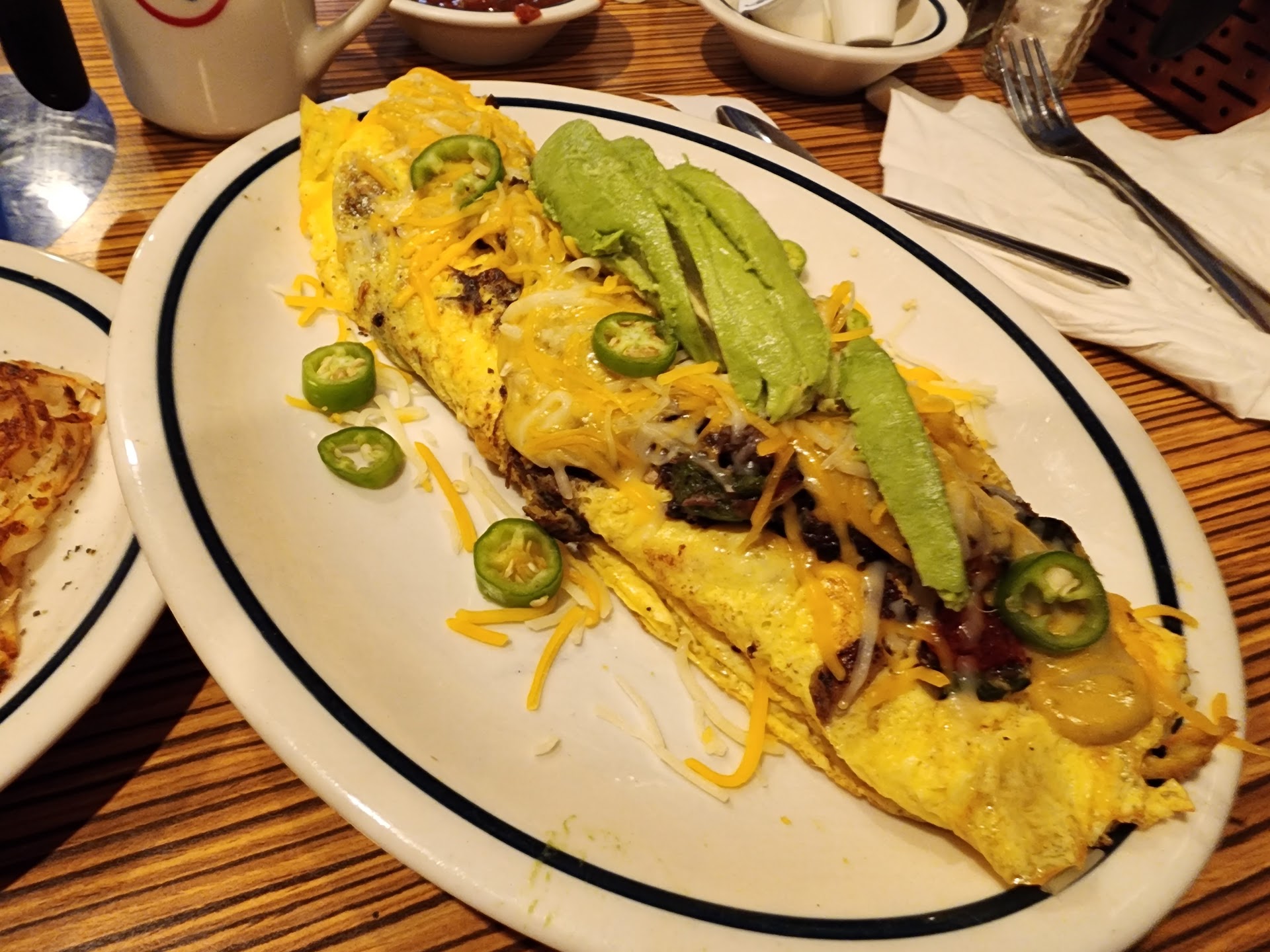 Fast forward to now, ordered the Spicey Poblano omelet again, with hash browns. I asked that the hash browns be crispy on both sides - they were more like soft baked hash browns. The omelet was disappointing this time. Hardly roast beef in it and absolutely not as tasty. Really disappointed because I got up at 05:30 to eat that, looking so forward to it.