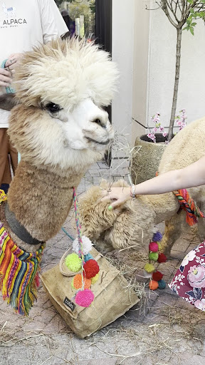 You can take photos with them. There was a constant flow of people petting and taking photos and videos with the alpacas. They were very popular!! I feel for the people dining on the patio because it was so packed that they seem to barely have room to enjoy their meal. All and all, everyone seemed to be enjoying their experience interacting with the alpacas.