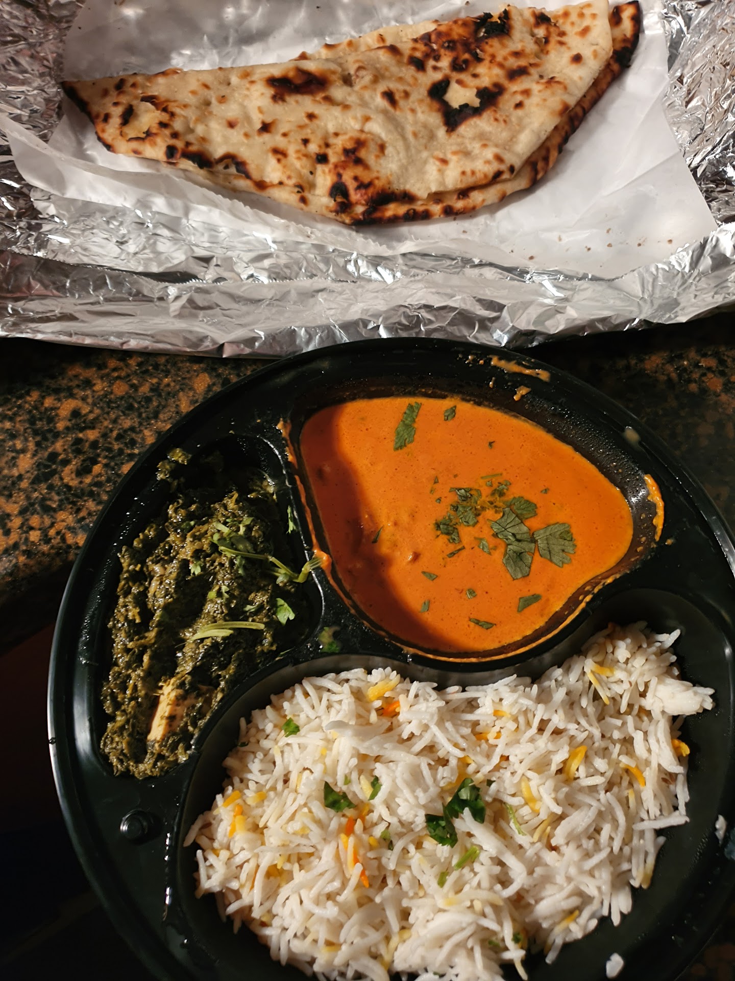 They have two thalis: vegetarian and non-vegetarian. There are dining-in and take-out versions. They offer “curries-of-the-day” (non-meat and meat versions). For dining in, you get three curries. For take out, you get two. You have a choice of two types of bread: tandoori roti or naan. For dessert, you have a choice of rice pudding, Gulab jamun or mango custard. Their menu is on their website.