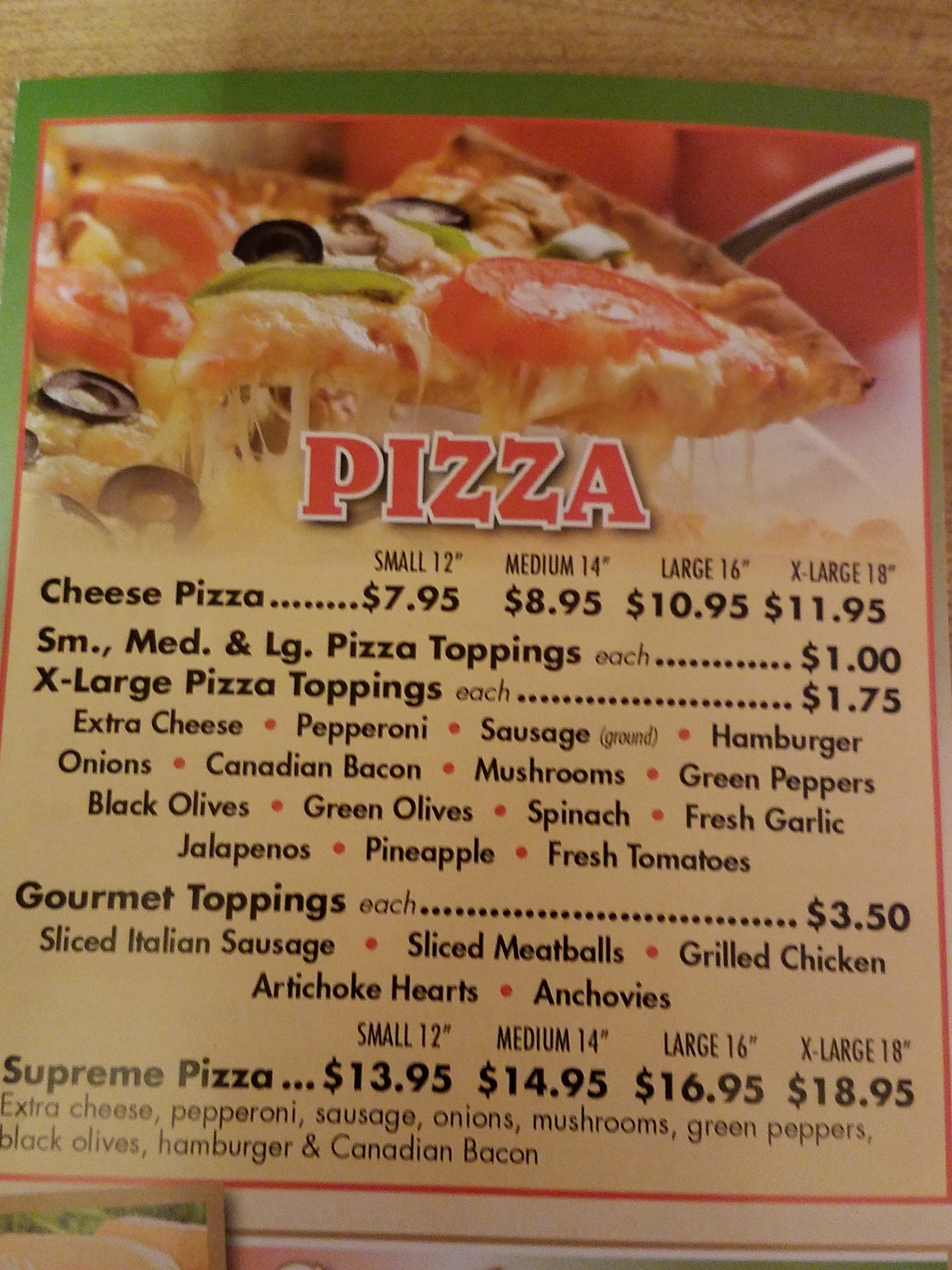 Read moreThe pizza was great, service is not. I ordered from this restaurant for pick up several times and all was good until I decided to come in and eat at the restaurant. They have one waitress only and she is not attentive to the customers and takes forever to check on them for refills on the drinks or anything they need. The first time I ate in the restaurant she had 3 tables including us to serve so, I thought it was just because it was a lot for her but the second time we went in, it was empty and her service was worse than the last one.She sat on her phone and talking to someone who was there with her the whole time, I had to get up to go ask the cooks for a to go box as well as the check and she would come to the table only if I waived her to come. Terrible customer service. I would not come back to eat inside ever again, only take outs I would recommend! Also, parking area is terrible, careful when going around the building since the properties parking...