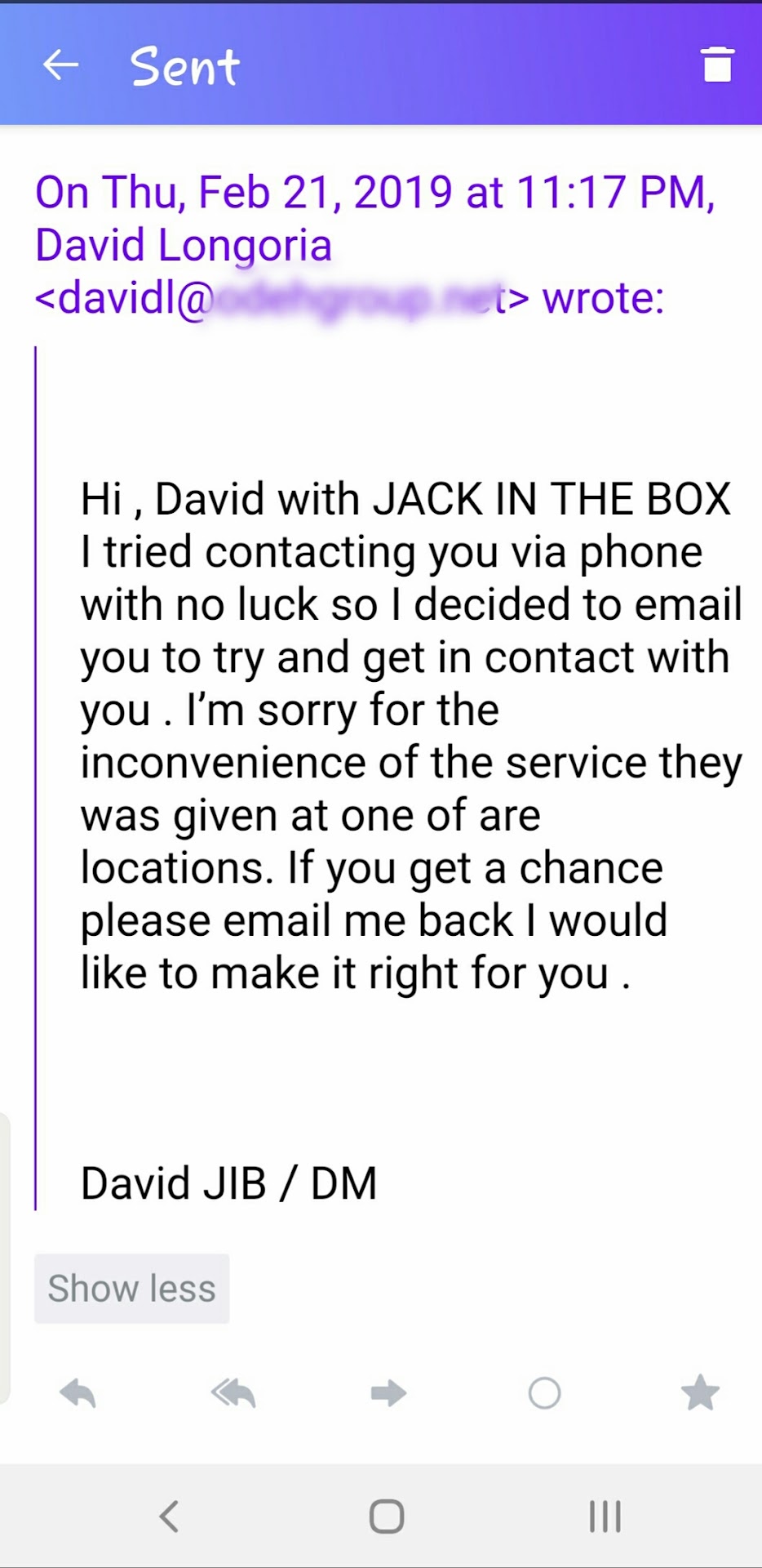 UPDATE!!!!: Unfortunately will never bring my family back to any Jack in the Box locations. After taking the survey was contacted by David and guest relations once (see attached photos) issue still not resolved! David never responded back after the first email he sent me. I instead received a email from guest relations asking to retake survey after already taking it. Customer service has went down in all areas of this food chain. Don't waste your money. Take it to the places that actually treat the customer right! See...