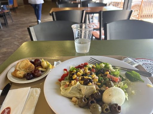 This restaurant has a great selection of sandwiches, salads, and soups. For the vegetarian to the person following a ketogenic regimen, there is plenty of variety at fair prices that's prepared quickly after ordering at the register and is brought to the table of your choosing. They have signature salads or a full salad bar. I'm a fan of the Big Chef salad and get it with a cup of the tomato basil soup for a very satisfying meal. The restaurant is clean with a self-service drink station offering freshly brewed flavored teas and soft drinks with water available as well. I would recommend this as a great standby or place to have a get together with friends and family. It can be a bit loud at times which has to do with the acoustics of the interior and architecture so for the hard of hearing or those sensory processing concerns this might not be your first choice. I've had a great experience with every visit and recommend this place for a reasonably priced satisfying meal. Thank you for reading my review and feel free to check out others I...