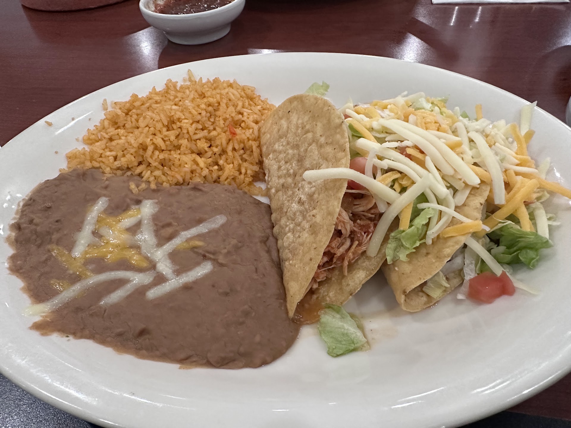 Read moreLOVED the salsa, I wish it was served warm or at least not refrigerator cold. My wife had the carne asada and the steak was delicious. Well seasoned and tender. I had the tacos. The shredded chicken tacos was real good. I did not love the ground beef taco. It lacked flavor and texture. Refried brand had good taste The rice was fresh but a bit dry in my opinion. All in all a good meal. Good service the servers were very kind. We came in around 1:30pm and there was no wait. I was impressed with how fast the food came out. Lastly, we shard a flan for dessert and it was...