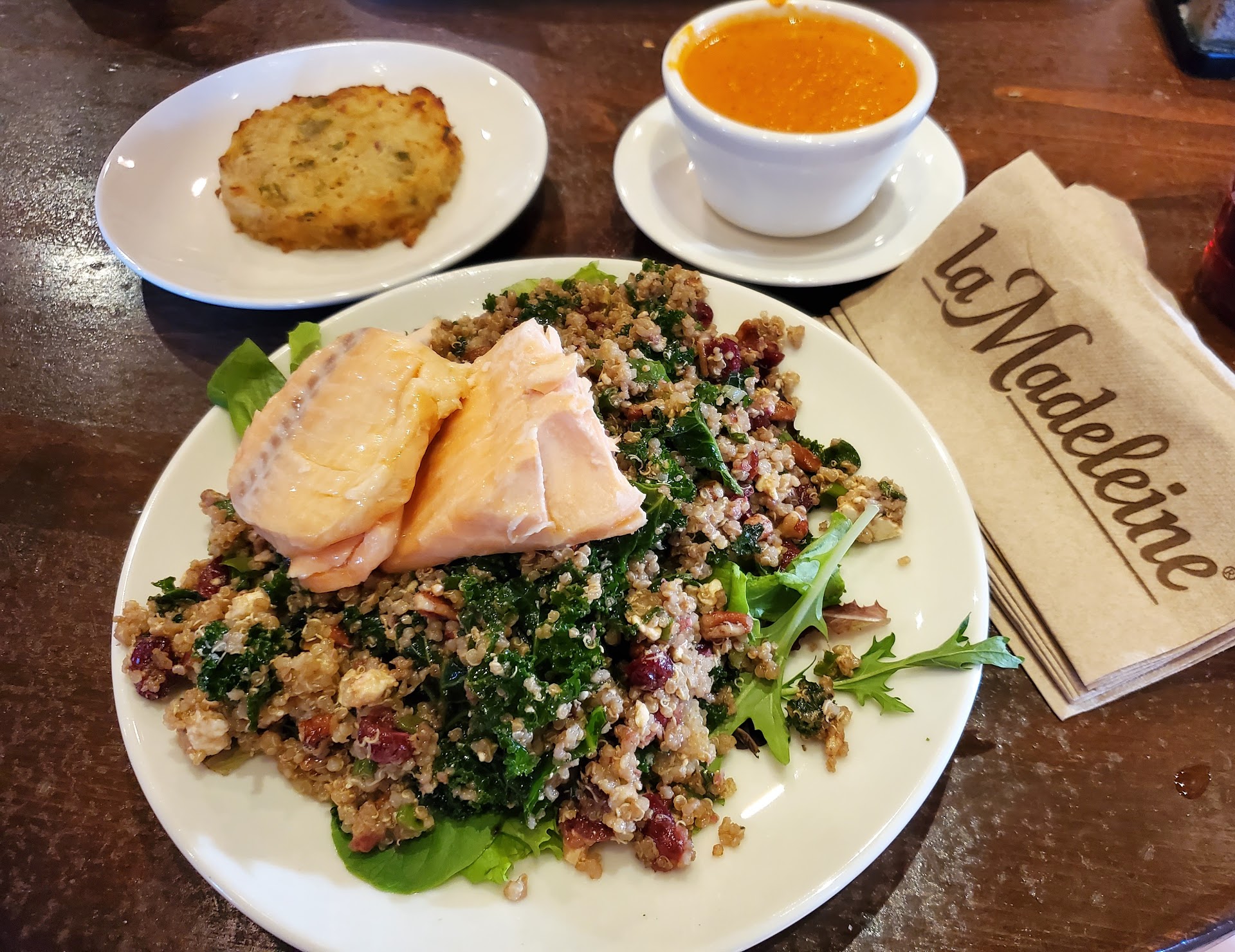 Ā Ā Ā Read moreSeriously understaffed no one taking orders, no one at the cold or the hot bar. You ended up having to place your order at the end of the register where there was only one girl doing the job of 4 people. She was taking orders, making salads, working the hot station and being the cashier. By the time we got through the line my soup was cold and the food I ordered off the hot bar apparently had been sitting under the heat lamp for quite some time, the potato galette was completely unedible it was like a rock. The tea canisters and bread station were empty, we paid for three drinks and ended up drinking water. This was my choice of places to go as my son was taking me out for my birthday. I love La Madeleine and it's been awhile since I've been as we moved and I now live rural. I was very much looking forward to going this evening only to be disappointed. La Madeleine has gone way downhill from the dining experience I used to have there. I asked to talk to a manager three different times during our visit but no one could seem to find her until just as we were leaving I found her... outside toking on her vape pen while her staff is inside running around like chickens with their heads cut off because they don't have...