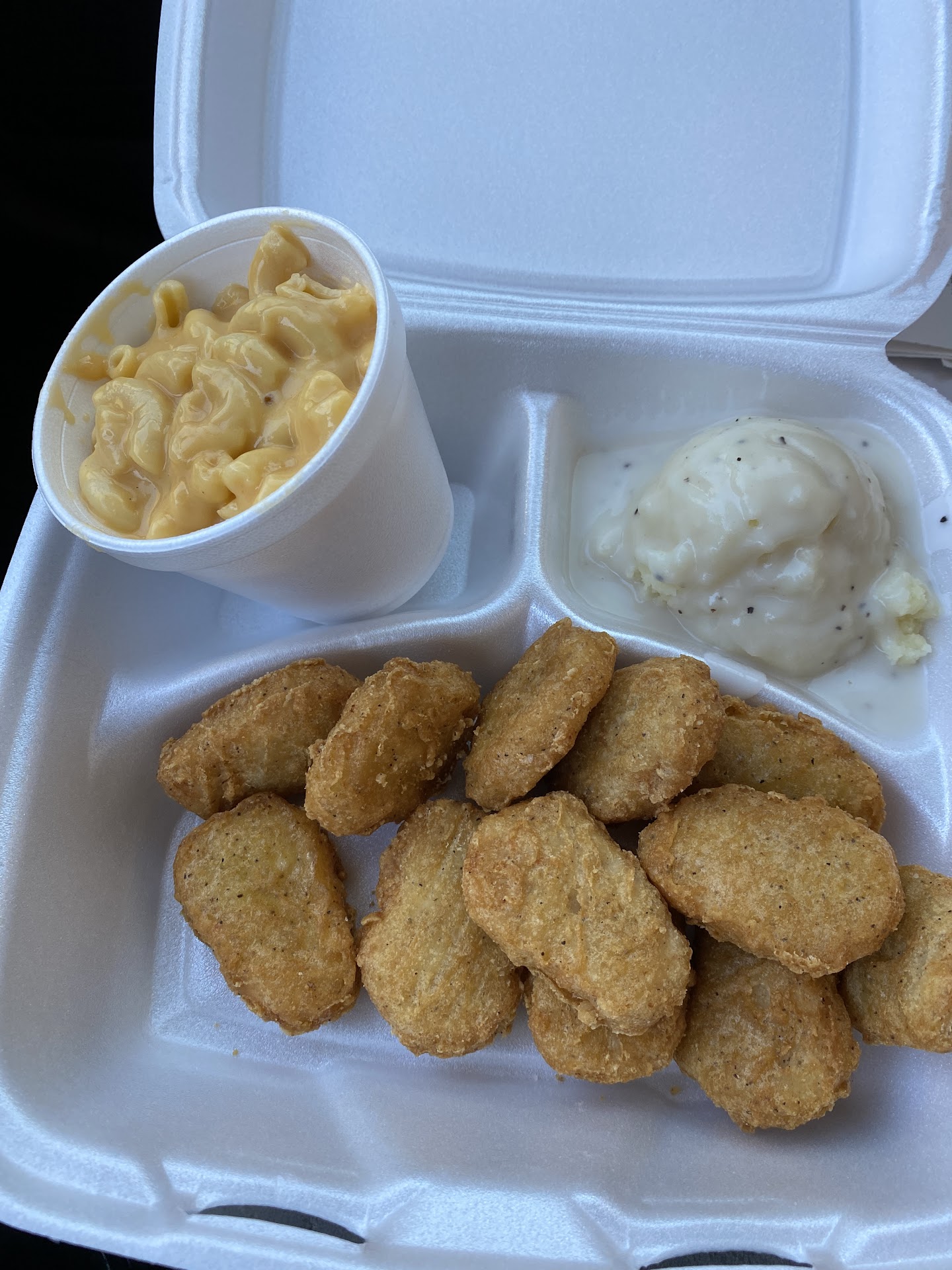 The fried chicken, rolls, corn, and okra that used to be hot, crisp, and fresh...well, isn't. The chicken sat under a heat lamp too long. The corn was soggy from sitting in water too long. The rolls have become doughy. The mac and cheese has become mushy.