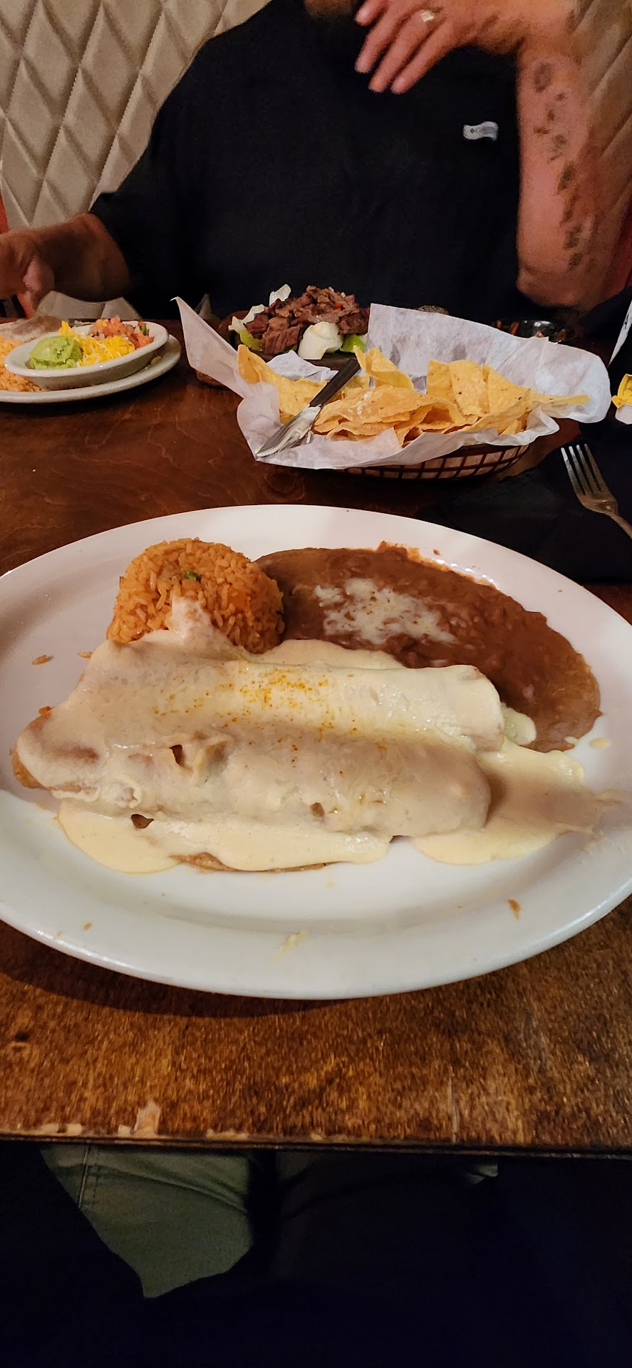 Ā Ā Ā Read moreAfter getting turned down at Uncle Julio with no reservation, we saw this shining peach of a restaurant across the interstate. Don't expect anything special about this place. When we walked in it smelled alot like the same industrial cleaner smell casinos use. I thought that was strange. Got seated. Some young kid comes and I ask him for some Queso. He was more than overjoyed to tell me they had no queso. I didn't think this was a good start. We should have taken this as a sign and just left. However it was getting late and we were all hungry. I've never been to ANY Mexican food place in the state of Texas in my 50 years that ran out of Queso. Congratulations, you guys are the first. Food came out reasonably quick. I ordered fajitas. Dude brings me the bean plate out first. Has to retrieve the meat. Then asks if we have everything. I'm like "where are the tortillas"? He's like oh, " you want tortillas"?? Wow...just wow. After about 5-10 minutes he waddles out with some tortillas. My son ordered Carne asada. Would have been the same plate without the tortillas with exception mine was cut up. There is another first, no tortillas offered with the fajitas. In my tortillas bin, I found crumbles of chips. Made me wonder if the kid scrounged these off someone else's returns to the kitchen after their meal. Sure tasted that way. They were old, and obviously microwaved. Yuk. Other orders to our table were a chicken chimichanga, chicken taquitos, and carne asada. I asked everyone to rate their food on 1-10. Everyone said 4-6. Very lackluster. Waiter was an idiot. Came out asking if it would all be on one ticket and I hadn't even eaten hardly any of my meal. Dude never asked us if we wanted desert. Several of us wanted a damn sopapilla. I was so erked by the experience I didn't even eat half my meal. Just paid the ticket and left the waiter a 2$ tip for his efforts at ruining ourmeals. As we left, the manager guy was thanking us and acting all proud as if they had done a good job. What a joke. We just hauled ass. I ended up eating a fast food on our 2 hour drive home. Waste of 120$ on some crappy mexican food, not much better than food from the frozen food section. To say the least we wont be back. I wouldn't recommend anyone to eat this. Just go...