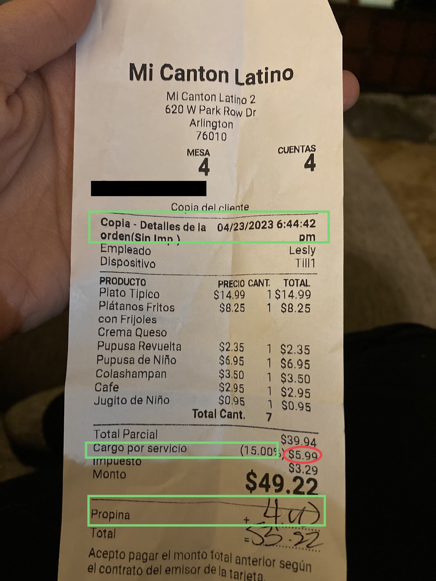 Read moreIt sucks that you want to get some delicious pupusas and plátano frito only to get the plátanos burnt on both sides. And the pupusas were mostly masa I ordered 2 with just cheese and there was so little cheese in the pupusa it blows my mind how restaurants make prices higher but the standards of the food weak. I spent $52 in food that was crapy. I didn't even eat...