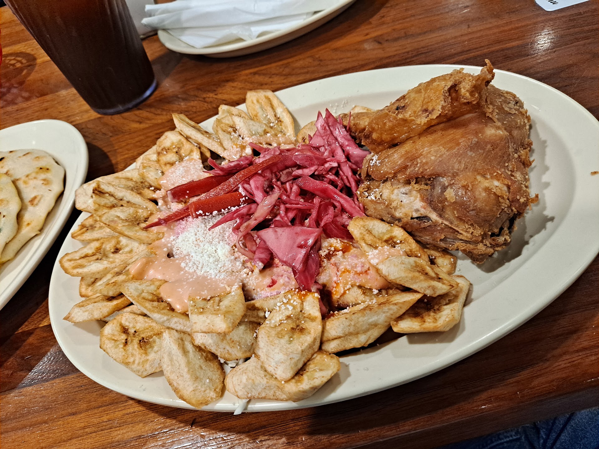 Right off the top, yes, go here, the food is delicious! We found this place by coincidence, just driving around looking for a bite to eat. Here starts my, albeit small, issue with this place. It is extremely unassuming, even walking in, the restaurant ambience is just kinda bland and doesn't stand out at all. I'd hate to see this place go because they didn't draw people in, specially since their food is very good! We had the pollo con tajadas and several of the pupusas. The pupusas were as good as I've ever had and the chicken with plantains was a delicious take on a sorta garbage plate but Salvadorian, highly recommend it. The service here is nice, very attentive wait staff, all smiles and very polite, gave me a chance to practice my Spanish. All in all, this place needs a bit of a better ambience, but the food is on point, can't...
