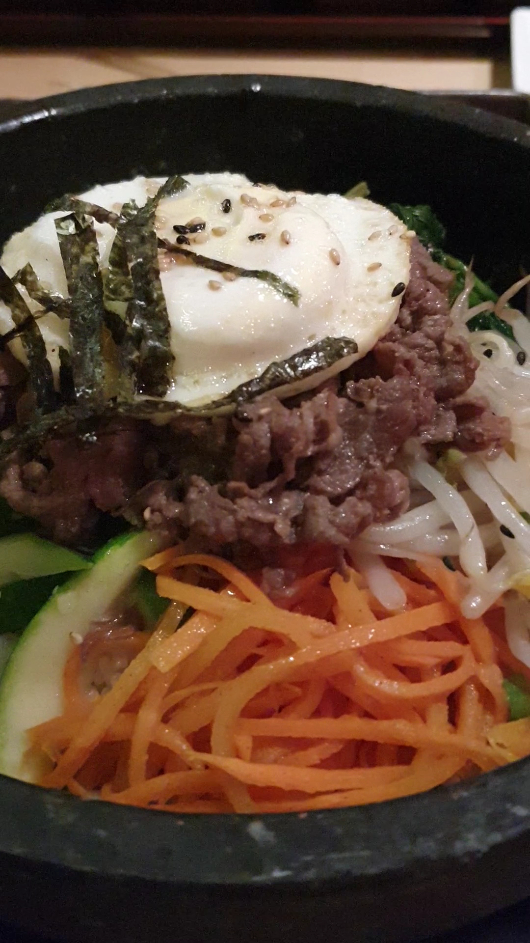 i also very much love the kopdol bibimbap here. beef bibimbap is my go-to here. tofu is also great! super delicious, bunch of generous sides, nice beef, nice kimchi. i wish the egg was less cooked, but i know thats probably a choice to cater to americans. the dish is great if youre dining in, but i wouldnt get this dish as take out, for obvious reasons that you dont get the crispy rice, but also because they mix it all up in the container, which i think completely completes the point of the bibimbap. i ordered this as take out 3 separate times since their dining room was closed during covid and opened again only recently. i kept ordering it, expecting it was just a mistake, but i guess their take out bibimbap is just this way. so dine in bibimbap 10/10, take out bibimbap 3/10.