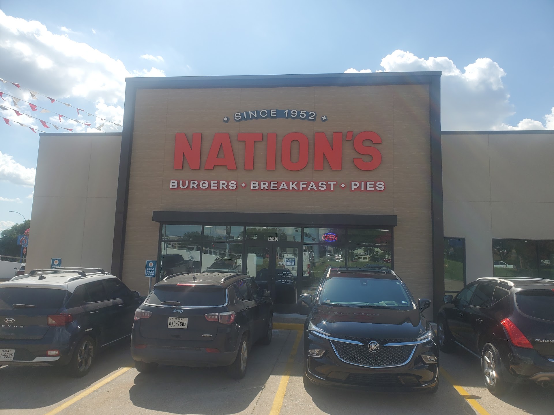 Read moreI love this place. They get pretty busy so it makes sense to be patient. I saw a guy complaining right in front of me a couple days ago because he said they took too long and ignored him. He said he would call corporate. He sounded kind of bratty to me. Anyway I’ve had an issue at this place before where they overlooked my order and took longer than they should have. When they realized it, they apologized, added a free banana pudding to my order and gave my daughter a free drink. I was initially upset but when given a chance, they put a smile on my face and kept me coming back. And they’re always friendly. I’ve been here approximately 10 or more times since they’ve opened. They’ve become my favorite fast food burger spot and yes that includes Whataburger lol. And I’m a born and raised Dallas, Texan😌. I’m a mayonnaise on my burger guy with melted cheese so this place is perfect for me. Patties taste seasoned which I love. If you don’t like these things then you’ll have to tell them. But the burgers are pretty big and oh the fries…I love the thicker cut fries that are still good when I get home (when they don’t overcook them). These fries are even still good if I put ‘em in the microwave. I’m usually not impressed by fries because they get cold fast and are no longer good. I usually ask for tater tots or onion rings. But this place has great fries. Them and Fat Burger both have great fries, the thicker cut fries, to go with great burgers. The Cali burger spots are coming to Texas and killing it. The desserts at Nations are just ok imo but to each his own. I’m sure some people love them but I grew up on great homemade desserts so most fast food desserts don’t cut it for me. They’re decent though. I’ve tried a few and now would probably only get one if I get some kind of deal. But I’ll continue to be a regular for the burger and fries. Only once did I feel like it wasn’t up to par. But as many times as I’ve been, that’s pretty good consistency to me. I’ll be back before the month is up lol. Also, I have to try the breakfast one of these days as well as the patty melt (sorry...