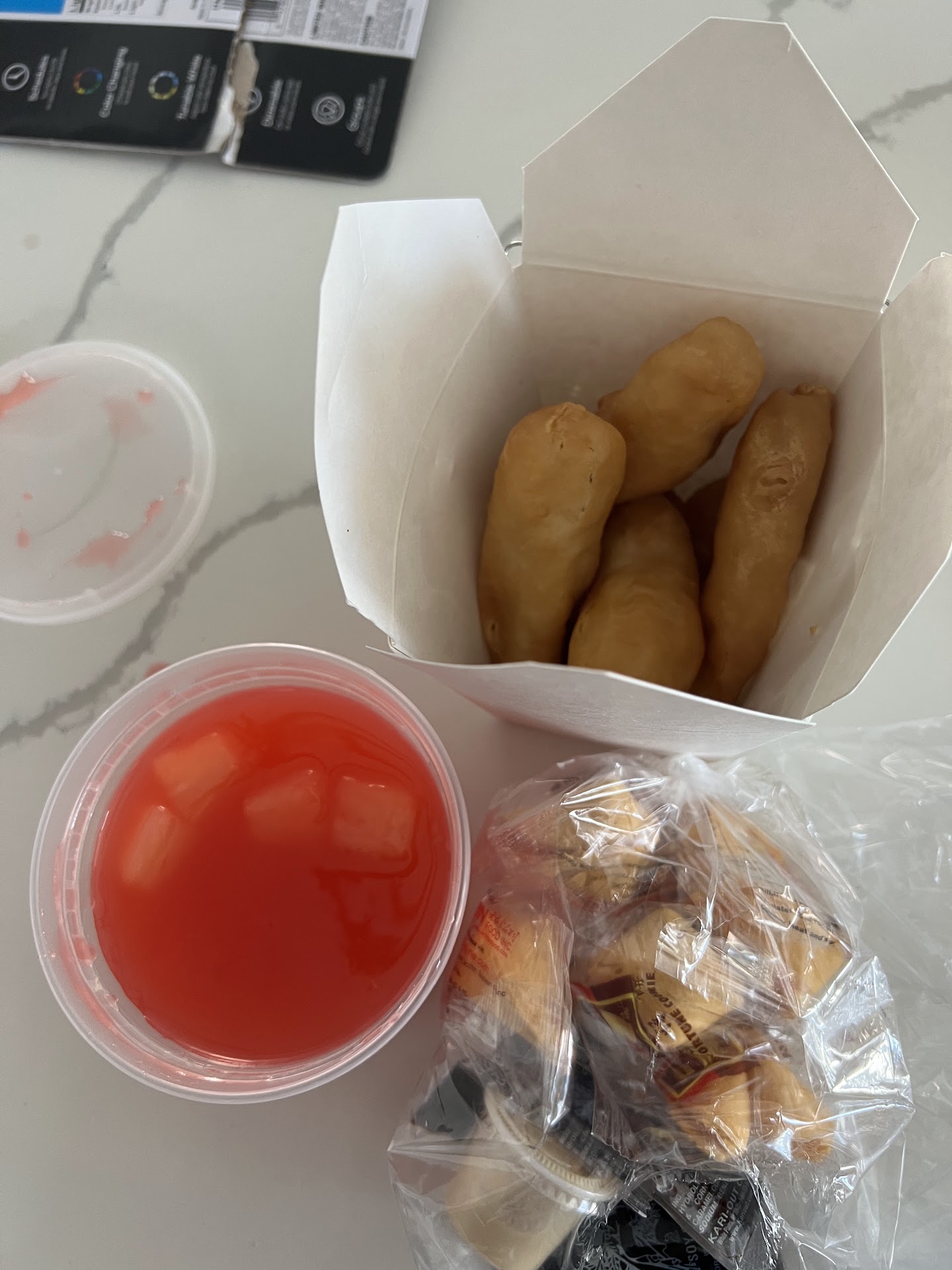 When I got home to get ready to eat, I noticed the smell of curry in the noodles They had made me Singapore Rice Noodles instead of the regular rice noodles.